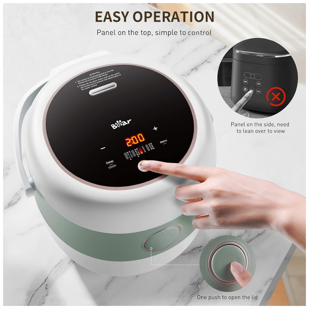 FÁCIL DE USAR E LIMPAR: Ao contrário de outras panelas elétricas de arroz, o painel da tela sensível ao toque fica na parte superior, que é claro e fácil de operar sem se curvar. Todas as peças são removíveis e laváveis na máquina de lavar louça para facilitar a limpeza.