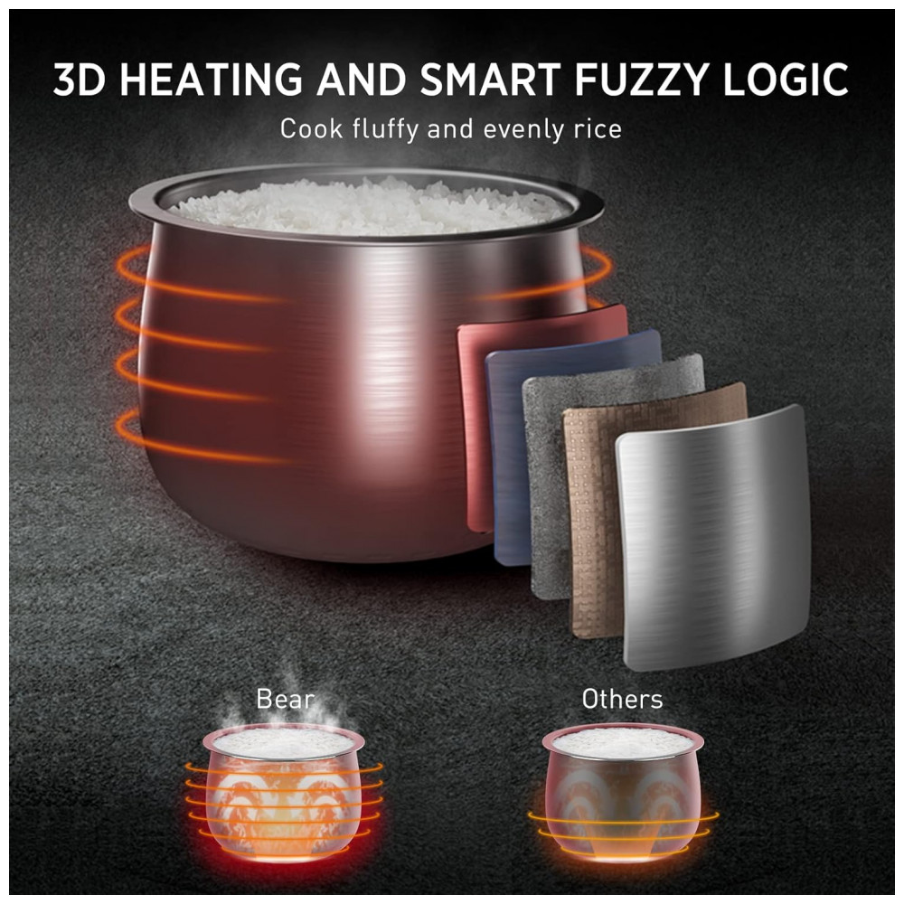 PANELA DE ARROZ FUZZY LOGIC: Possui microcomputador integrado que pode detectar como o arroz está cozinhando e ajustar a temperatura com precisão durante todo o processo de cozimento do arroz em 4 etapas. Com forro curvo espesso para aumentar a área de aquecimento do arroz, cozinhe arroz branco perfeito, arroz de sushi e arroz integral.
