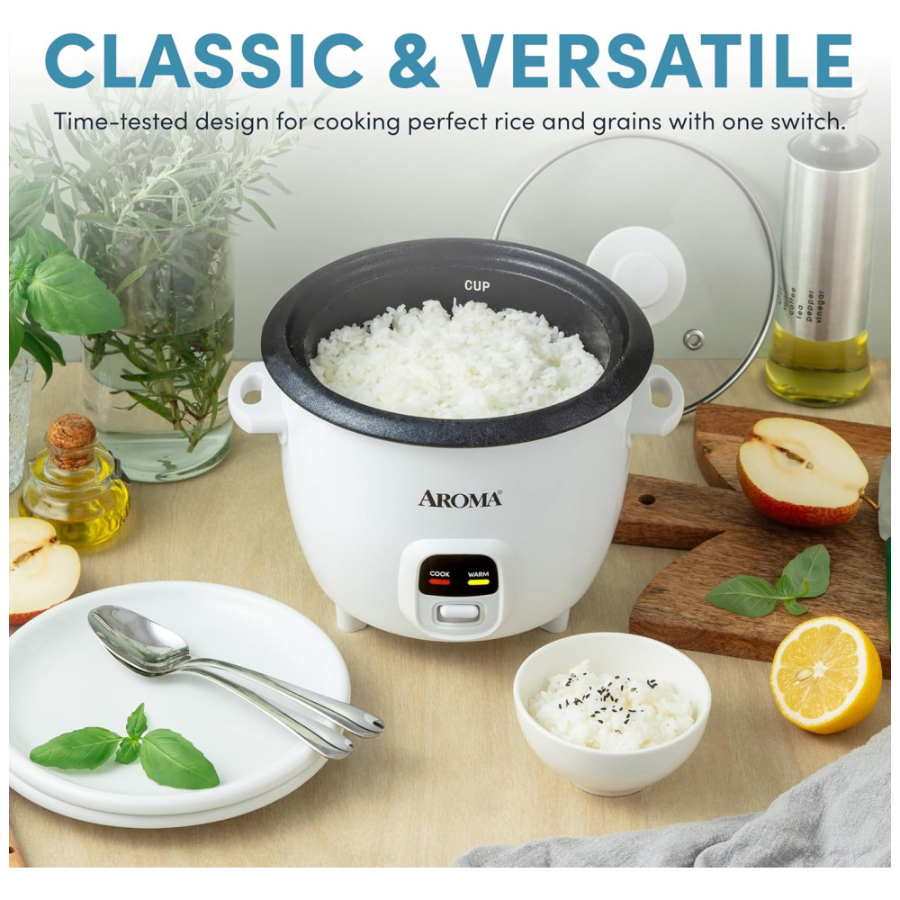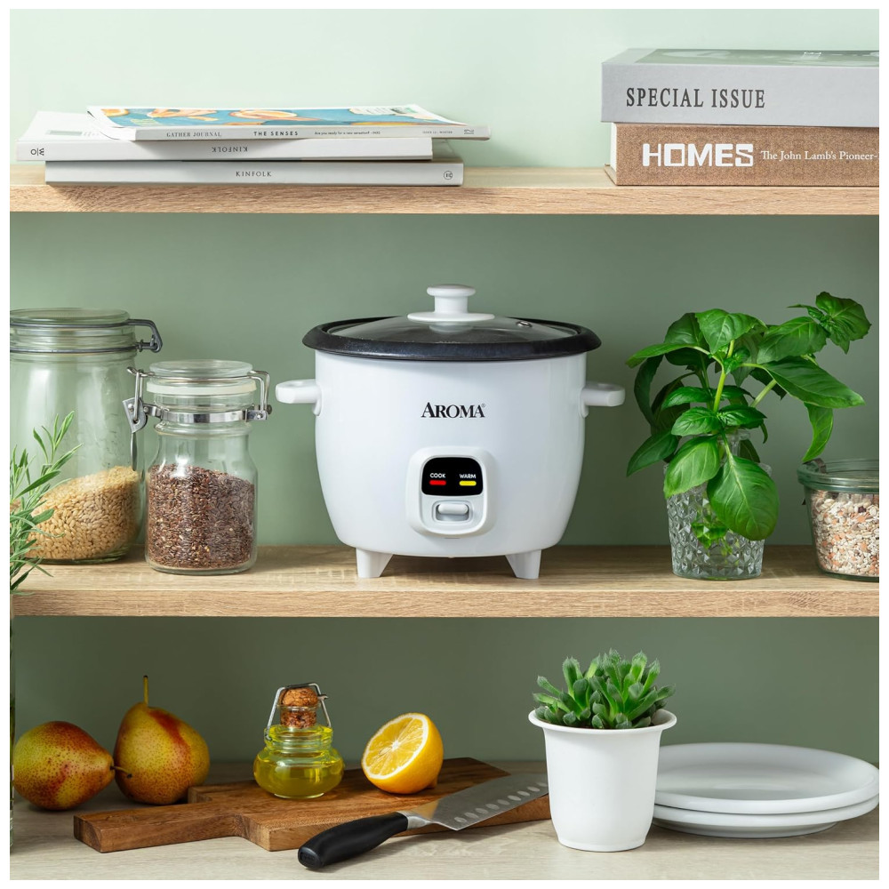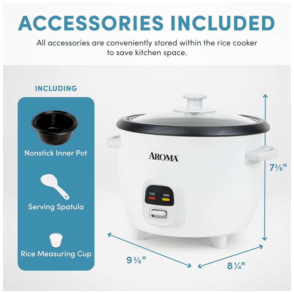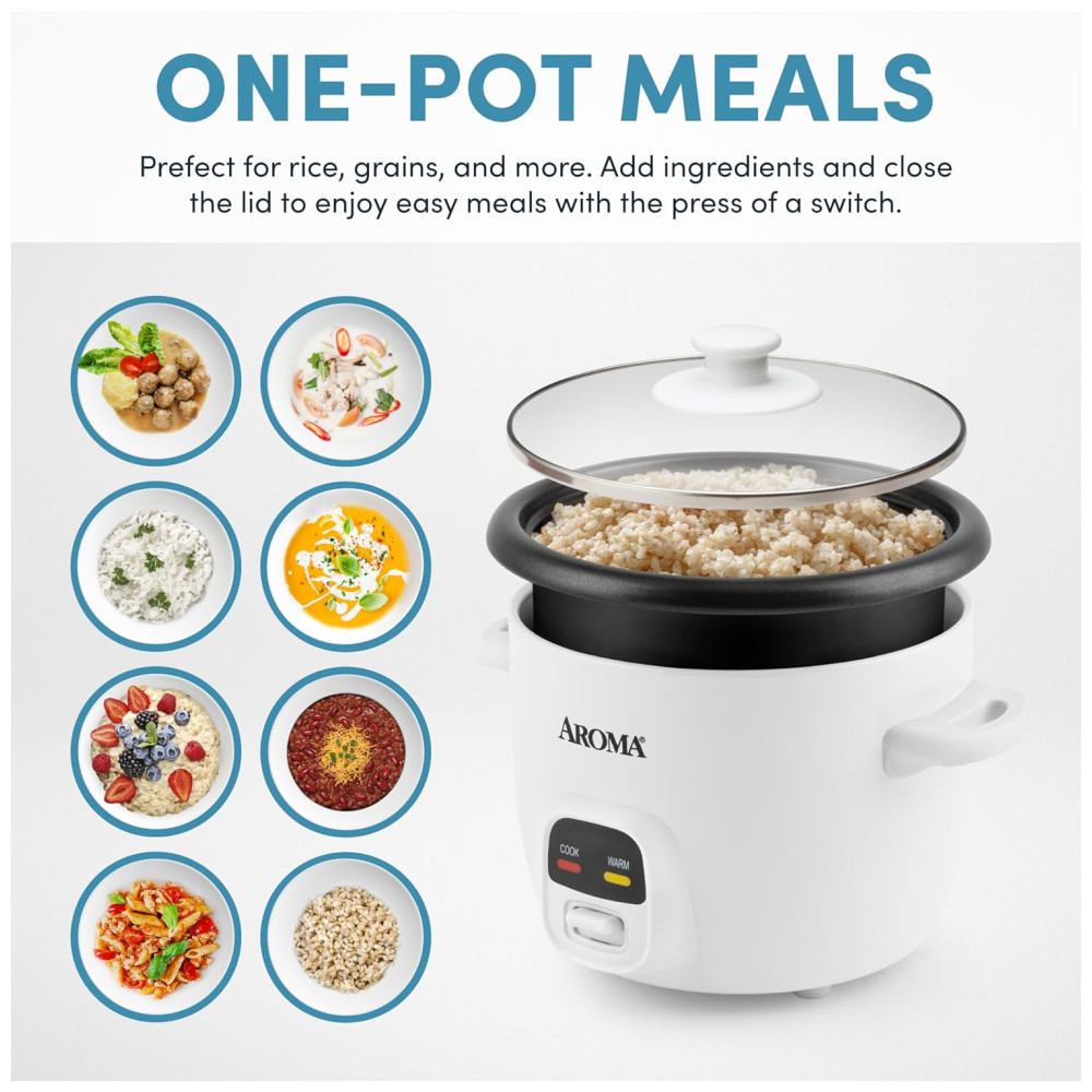 Panela de Arroz AROMA 3 Xícaras (Cru) / 6 Xícaras (Cozido) Pequeno Fazendeiro de Mingau Sopa Manter Aquecido 15L Branco ARC-393NG.