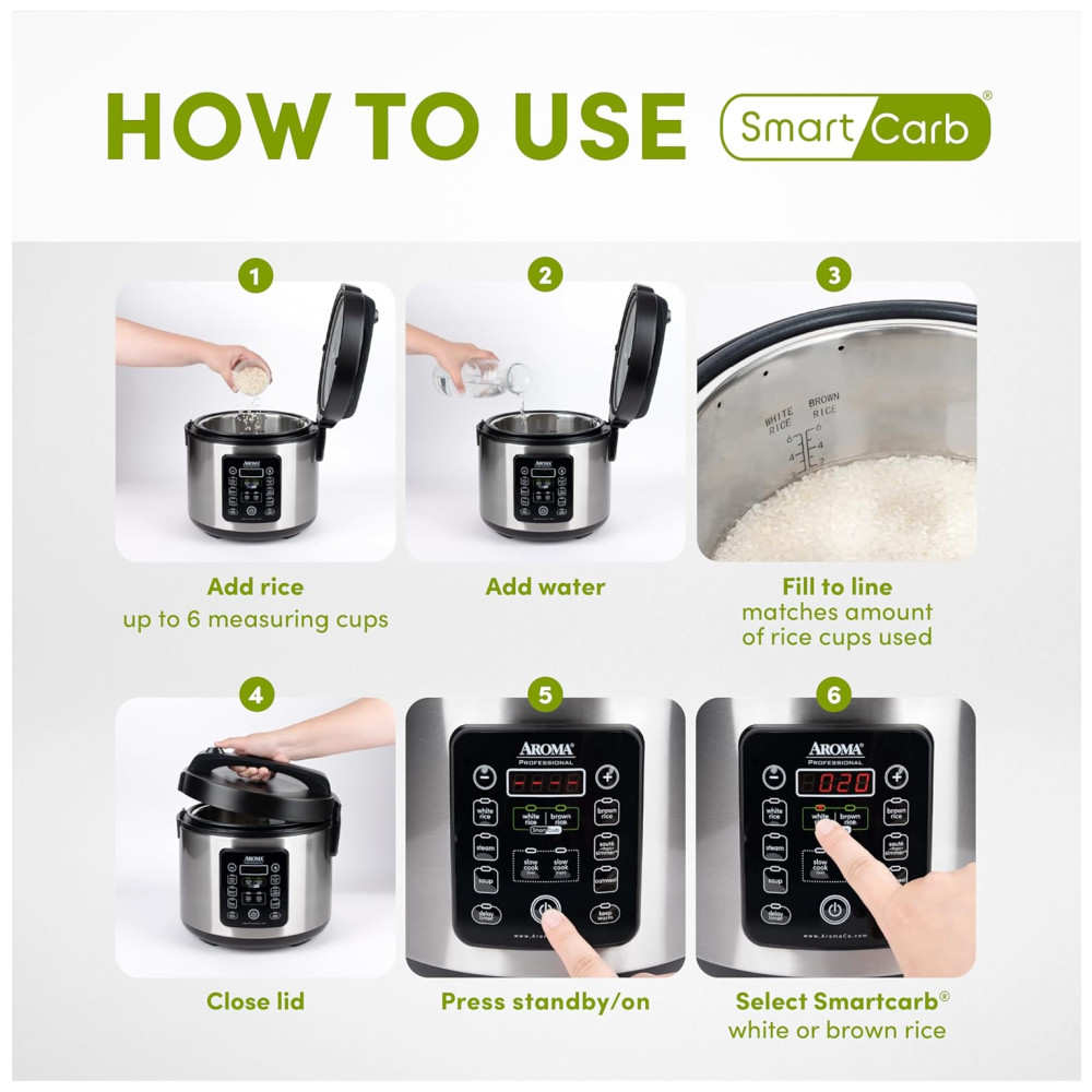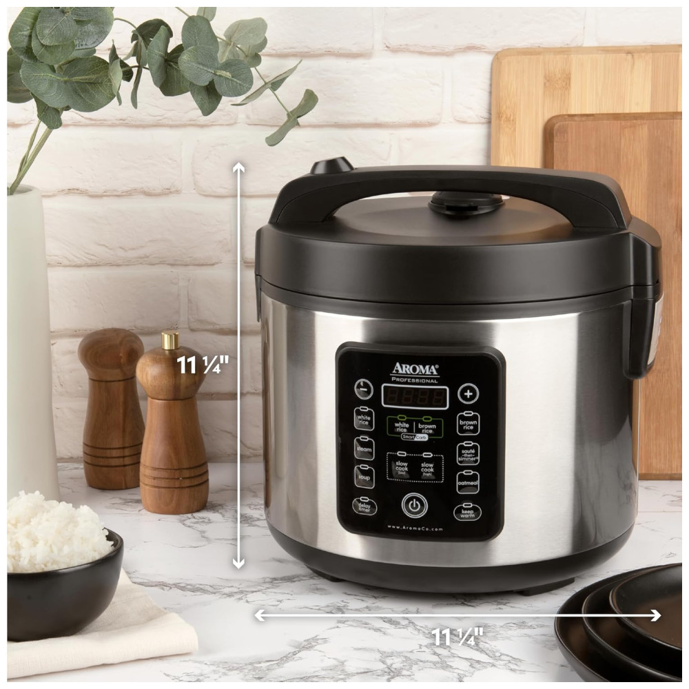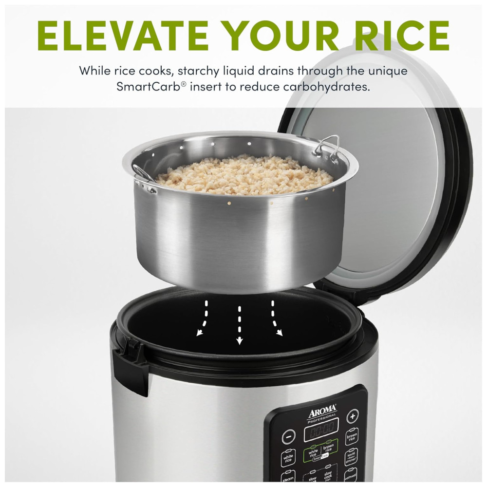 Panela de Arroz Aroma ARC-1120SBL SmartCarb Aço Inox 5L 20 Xícaras (Cozido) com Pote Antiaderente Bandeja para Vapor e Função de Slow Cooker.