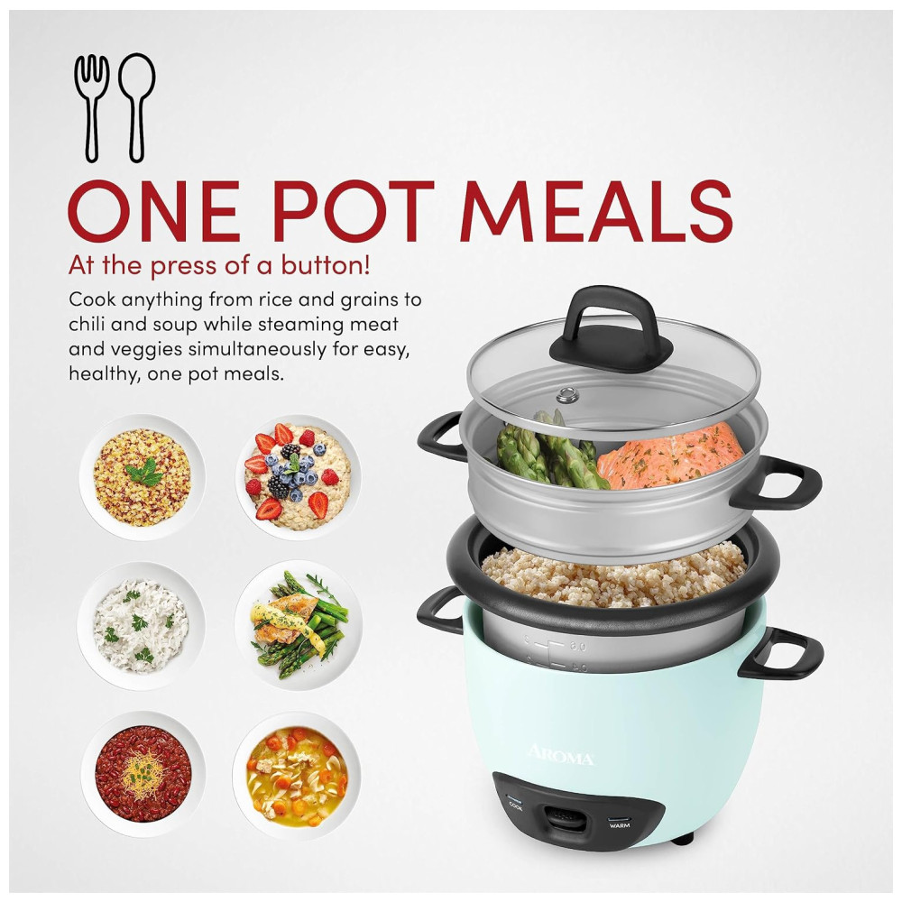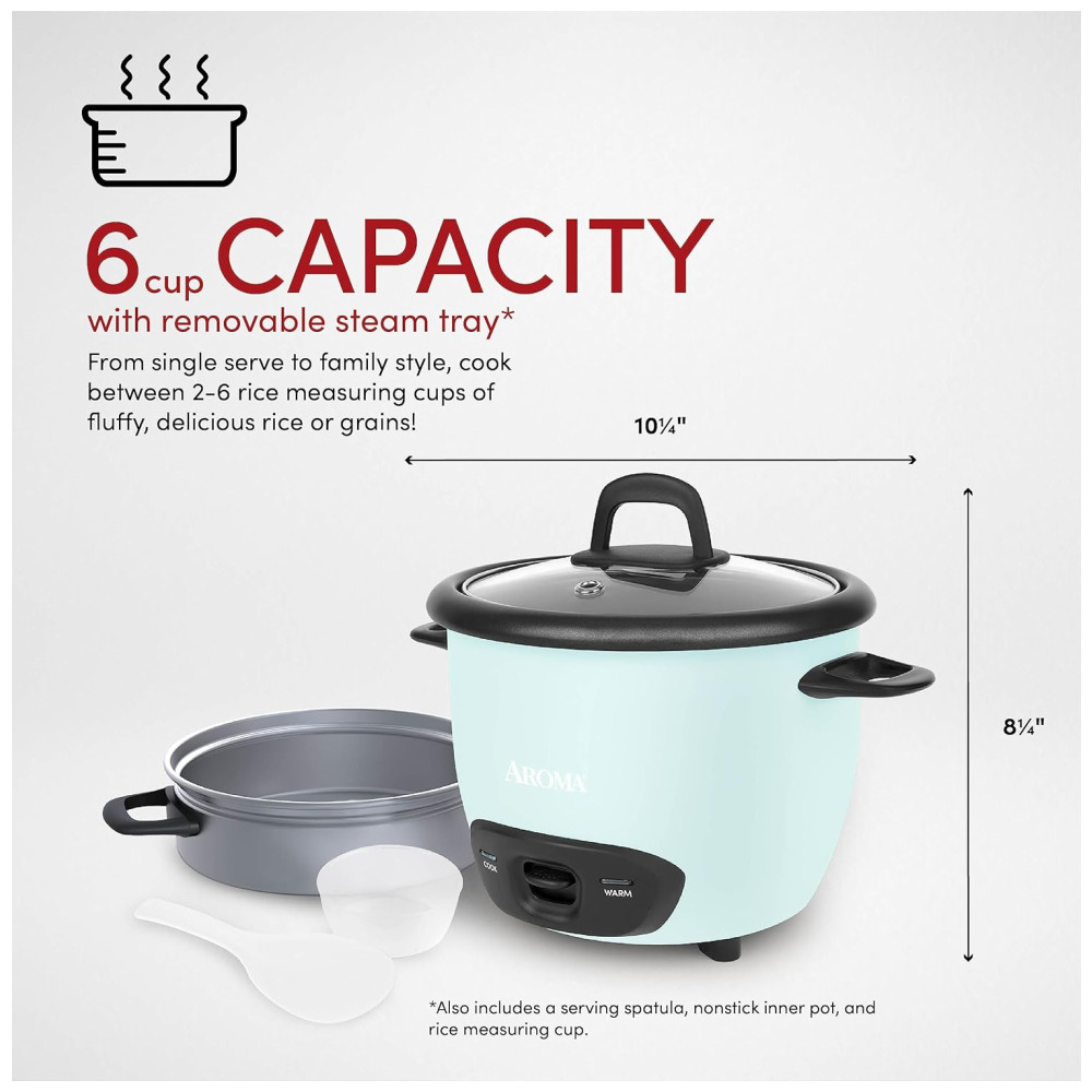 Panela de Arroz AROMA® Cozinheiro de Arroz e Grãos 6 Xícaras (Cozido)15L (ARC-743-1NGBL) Azul Claro. Ideal para Cozinhar Arroz Quinoa Aveia.