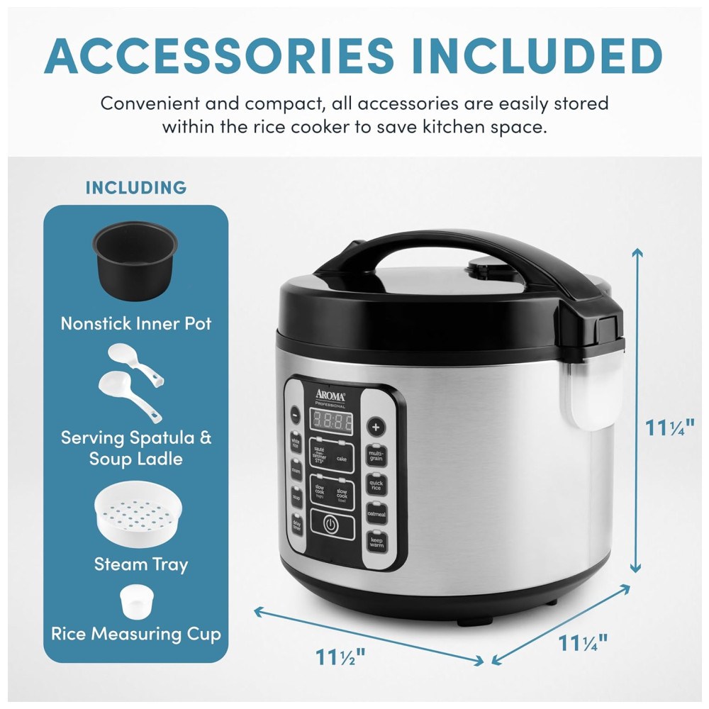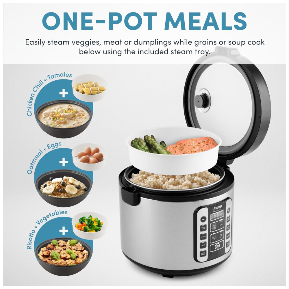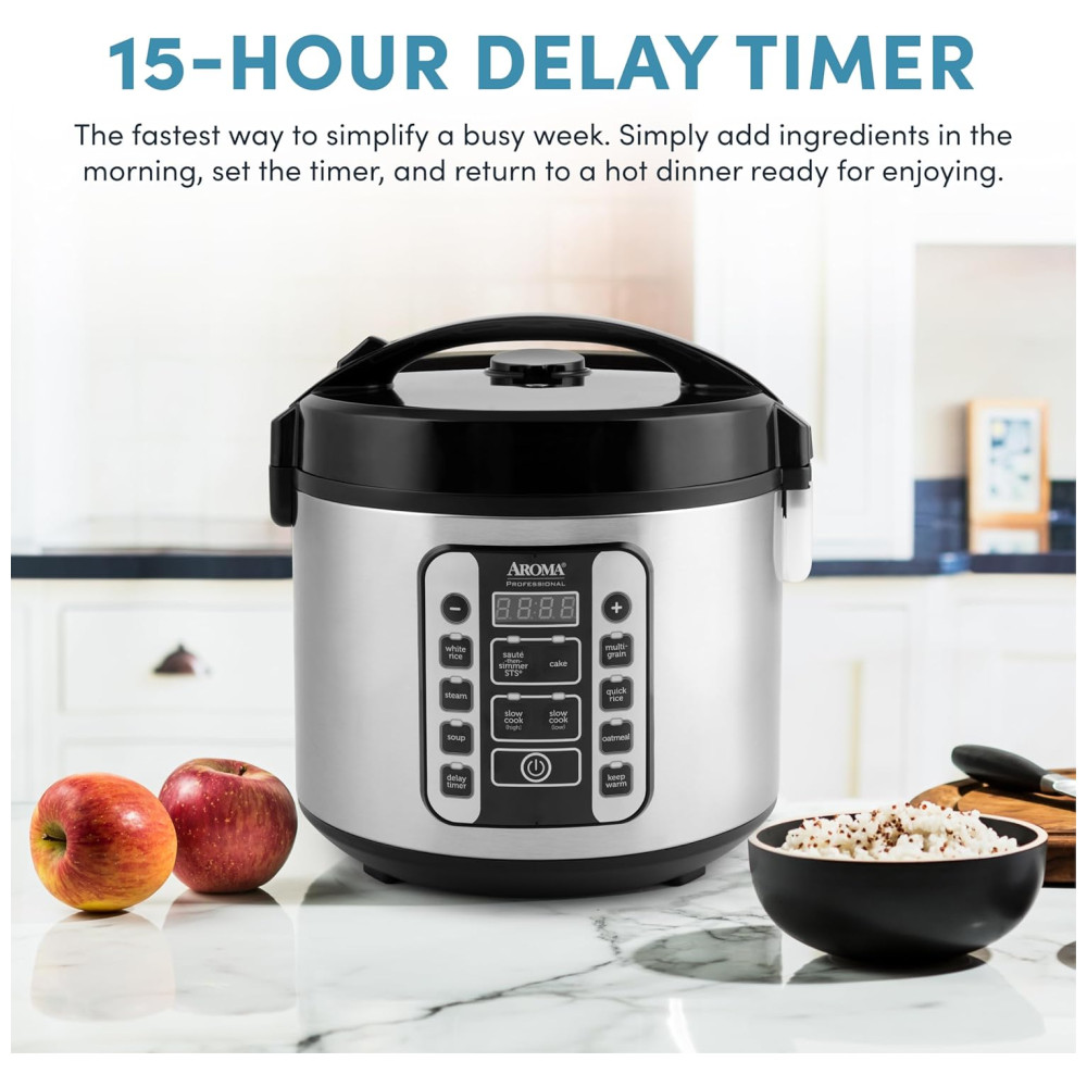 Panela de Arroz Aroma Housewares AROMA® Profissional Panela Digital 5L 20 Xícaras (Cozido) com Vapor Cozimento Lento e 10 Modos Inteligentes.