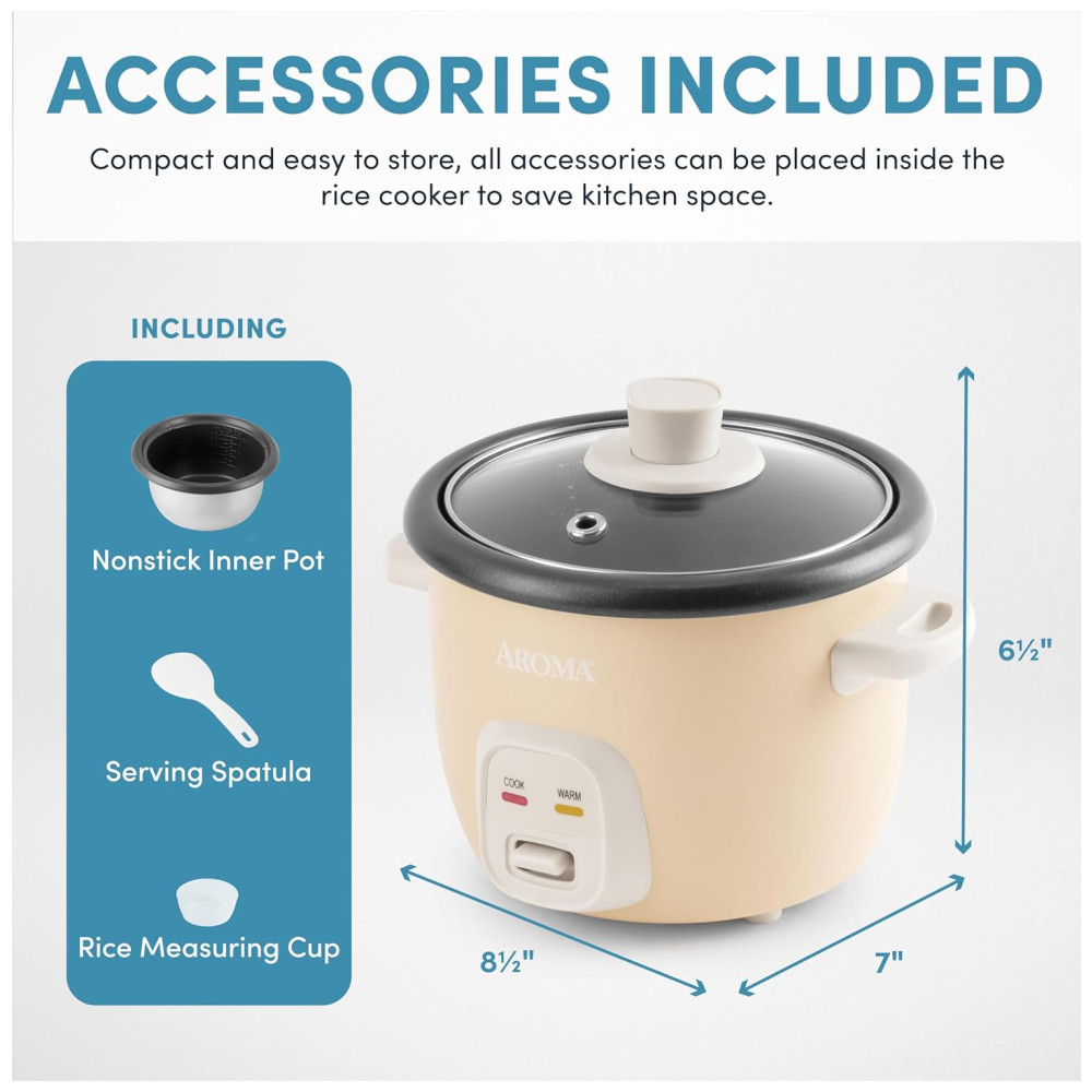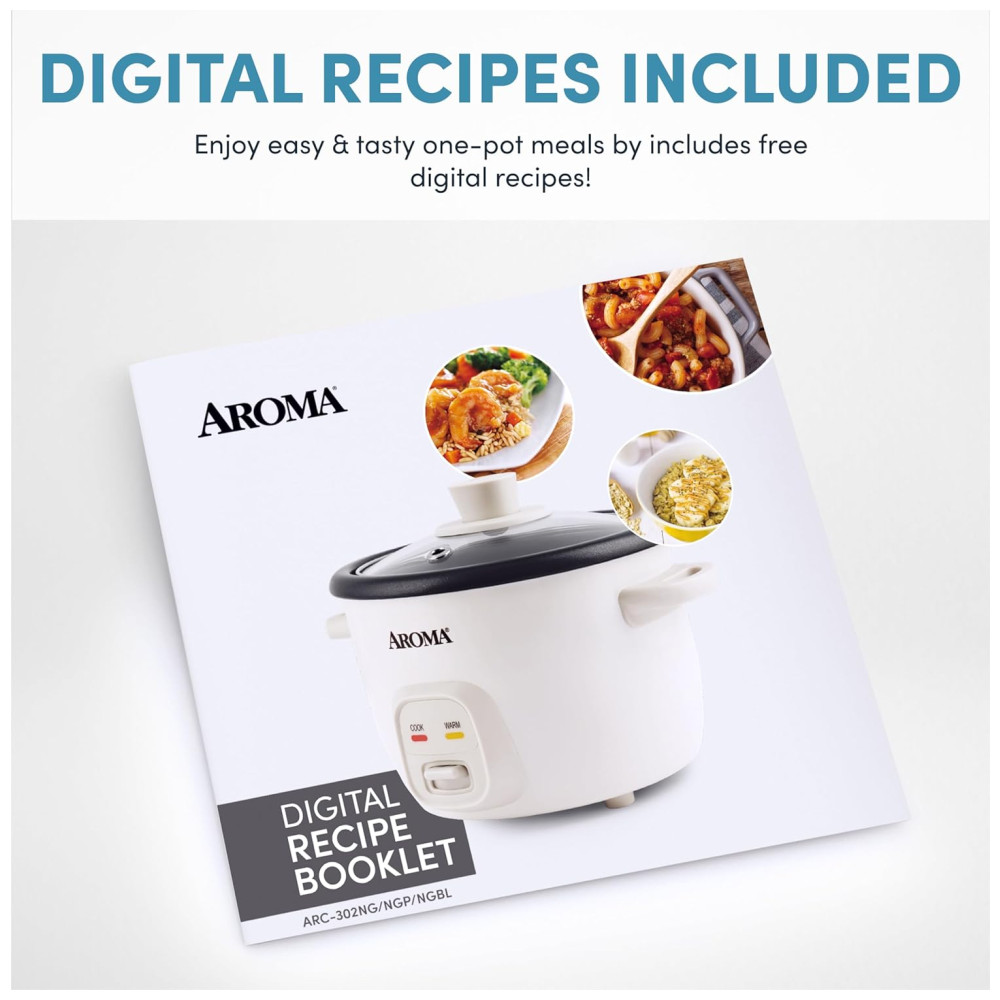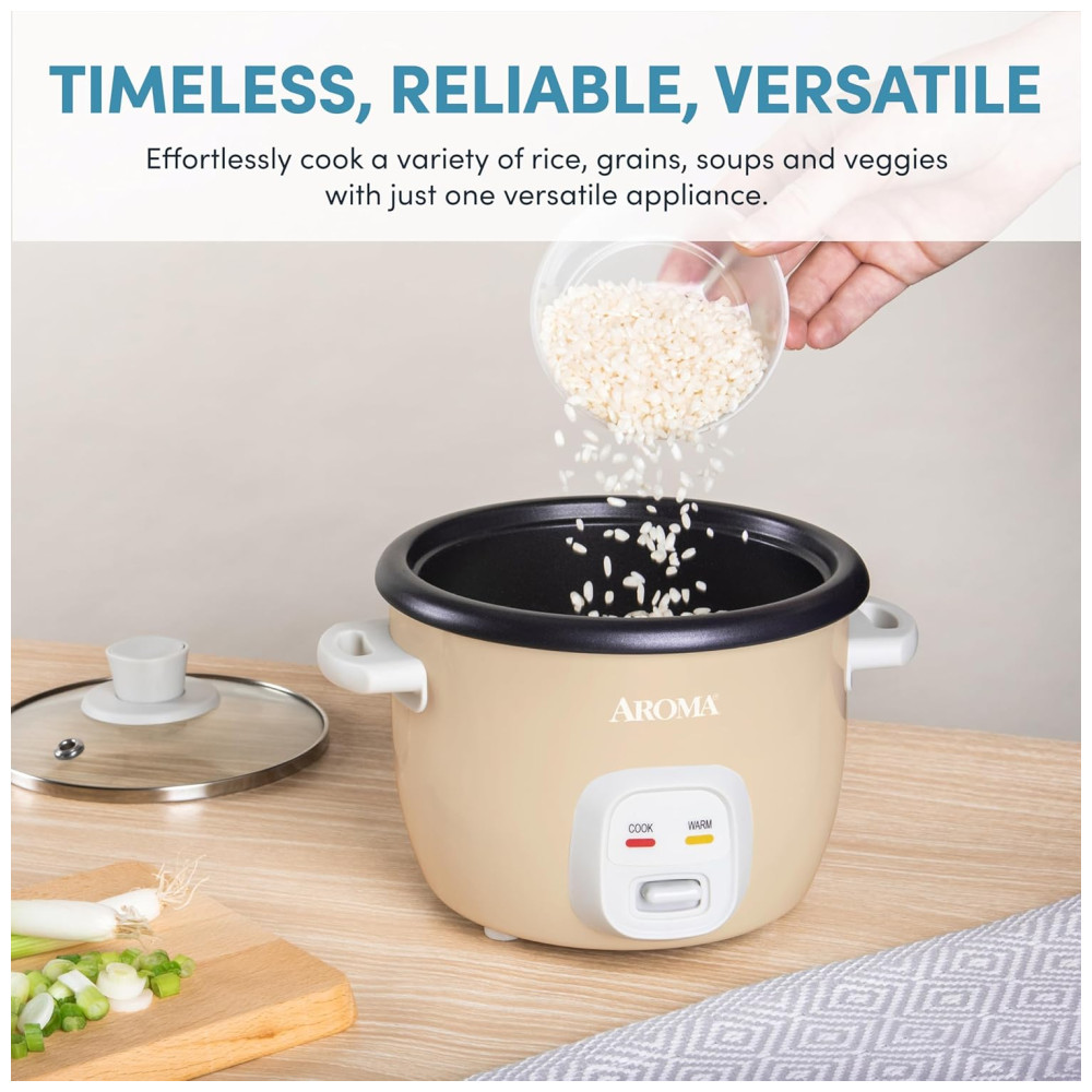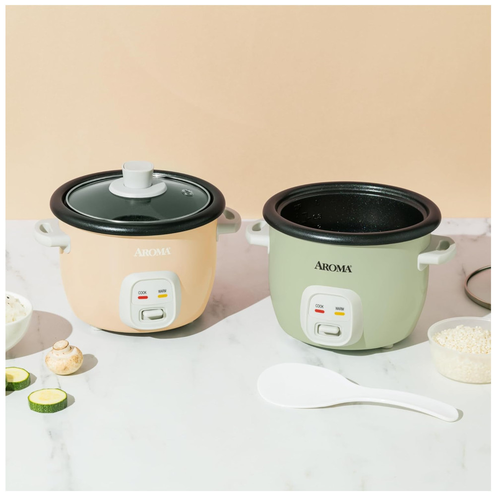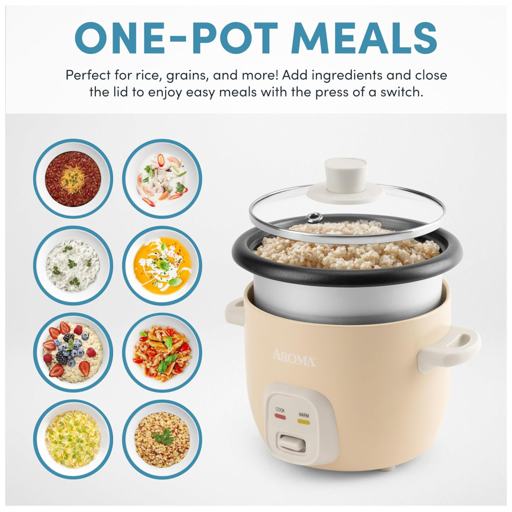 Panela de Arroz AROMA® Mini Rice Cooker 2 Xícaras (cru) / 4 Xícaras (Cozido) Cozinha Grãos Faz Sopas Mingau e Mantém Aquecido.