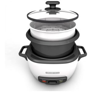 Panela de Arroz BLACK+DECKER 14 Xícaras (Cozido) com Cesto a Vapor Tigela Removível e Antiaderente Branco. Ideal para Arroz e Grãos.