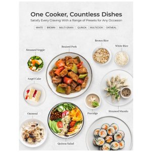 Este pequeno cozinheiro elétrico permite preparar arroz branco glutinoso, arroz integral, aveia e até comida para bebês! Com configurações ajustáveis e controles fáceis de usar, você pode preparar uma ampla variedade de pratos, ideal para todos os amantes de arroz.