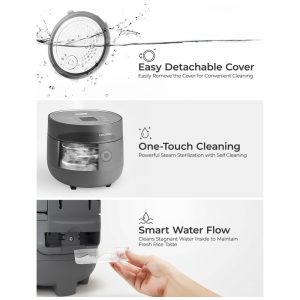 Cozinhe até 1,4kg de arroz com facilidade com este cozinheiro de arroz coreano! Possui função de auto-limpeza, tigela antiaderente e tampa removível para preparo e limpeza sem complicação.