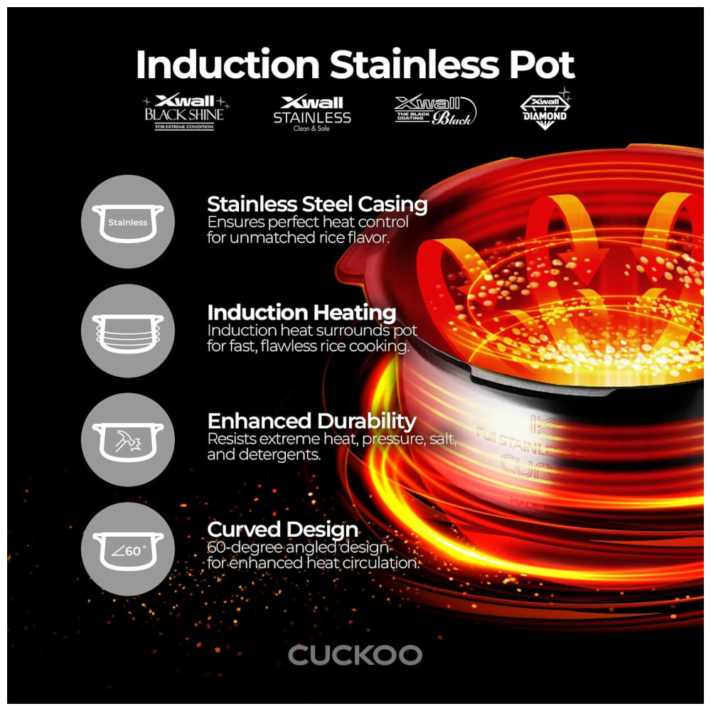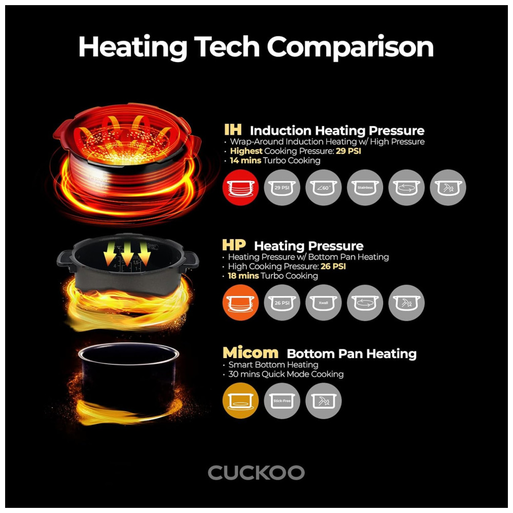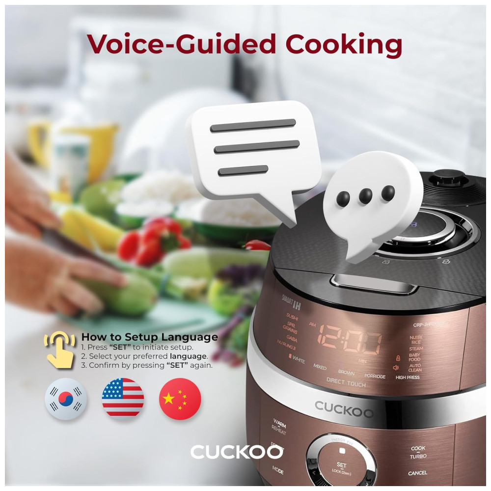 Panela de Arroz CUCKOO CRP-JHR0609F 6 Xícaras (Cru) / 12 Xícaras (Cozidas) Aquecimento por Indução 16 Opções de Menu Tecnologia Fuzzy Logic.