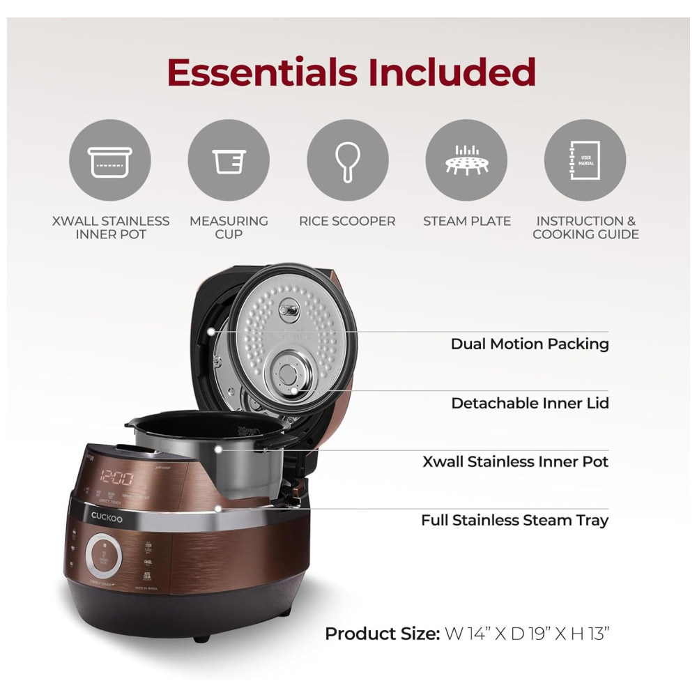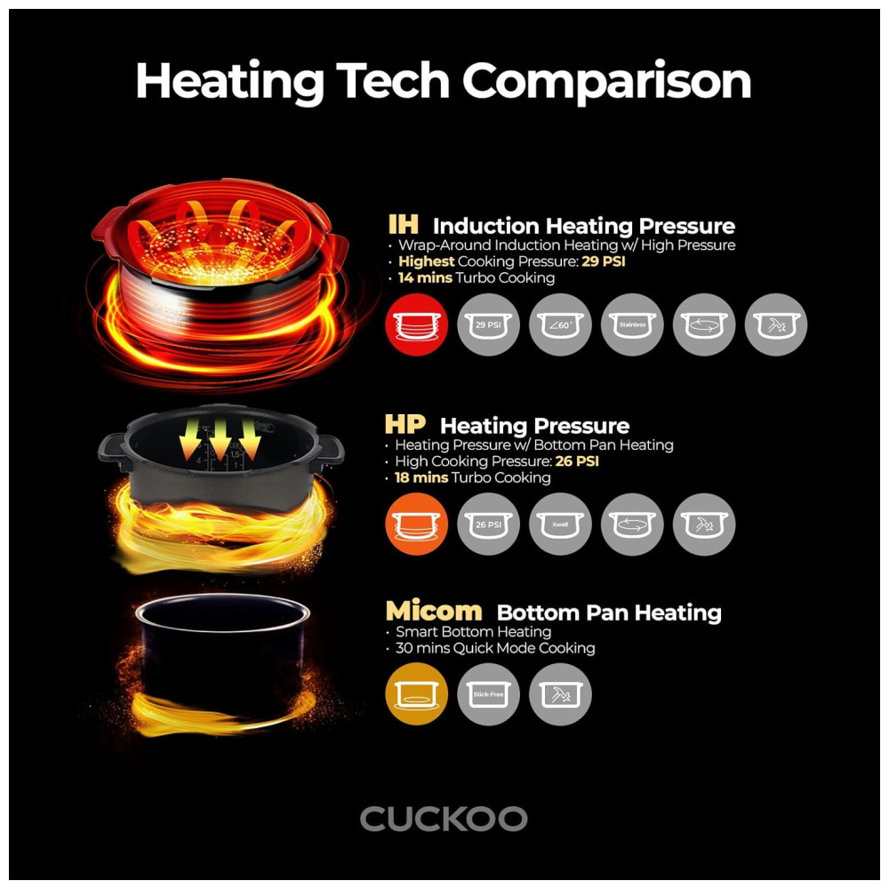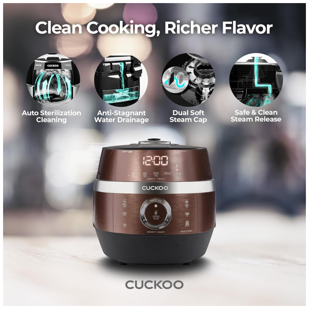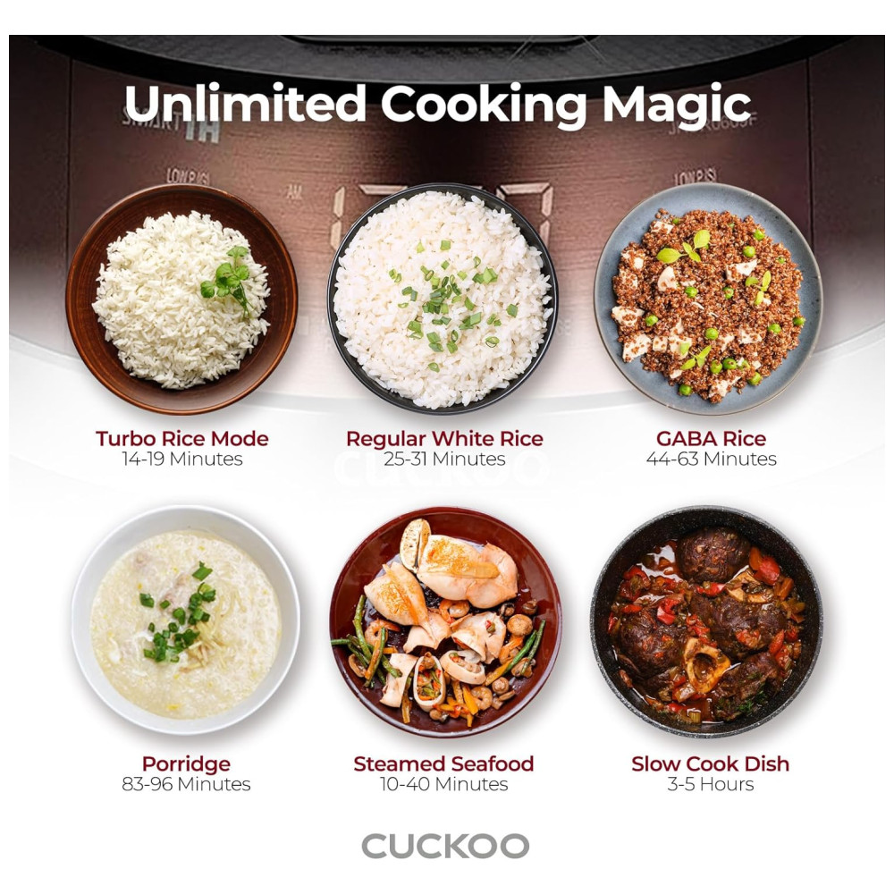 Panela de Arroz CUCKOO CRP-JHR1009F 10 Xícaras (Cru) / 20 Xícaras (Cozidas) Aquecimento por Indução 16 Opções de Menu Tecnologia Fuzzy Logic.