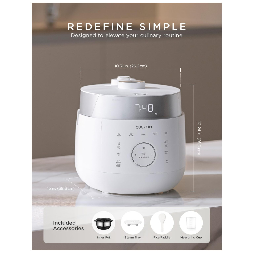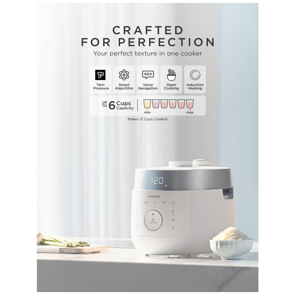 Panela de Arroz CUCKOO CRP-LHTR0609FW 6 Xícaras (Cru) 12 Xícaras (Cozido) Aquecimento por Indução 16 Modos Voz Auto-Limpeza Tigela Antiaderente