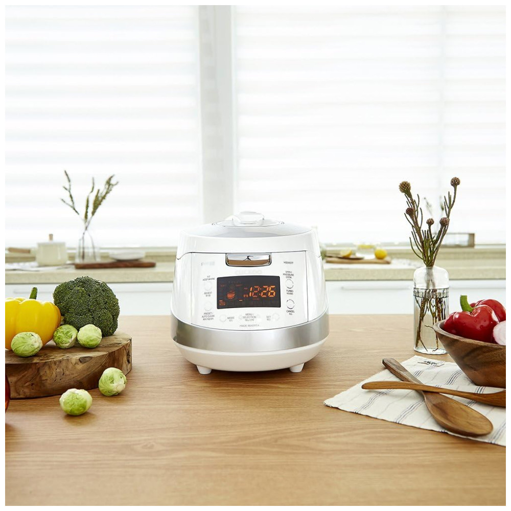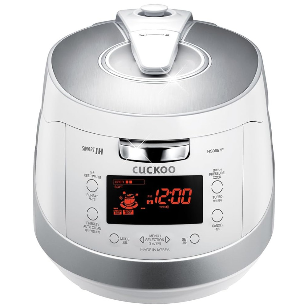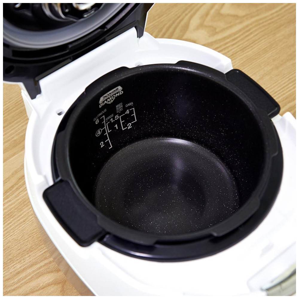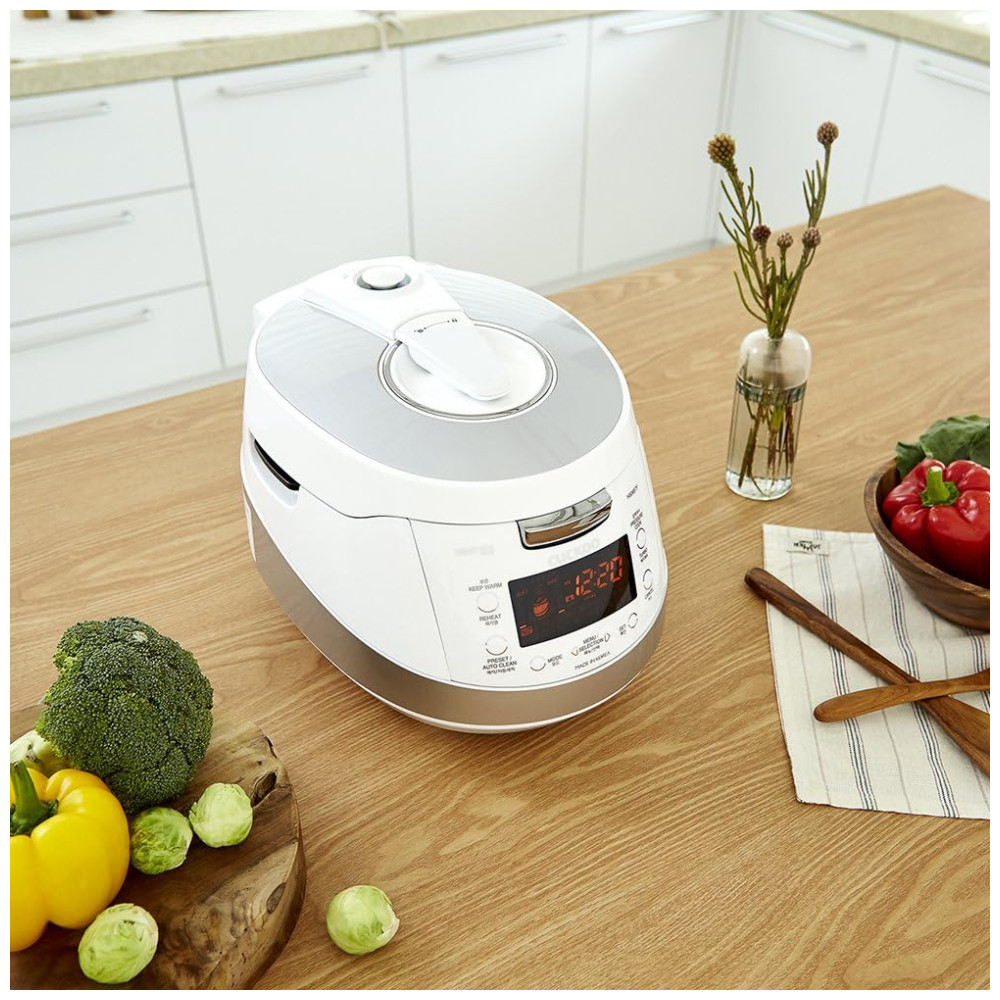 panela de arroz de pressão de aquecimento por indução de 6 xícaras revestimento antiaderente branco CUCKOO CRP HS0657F Branco