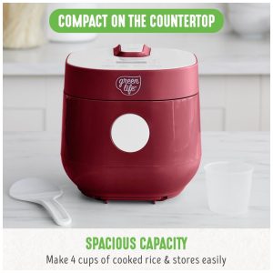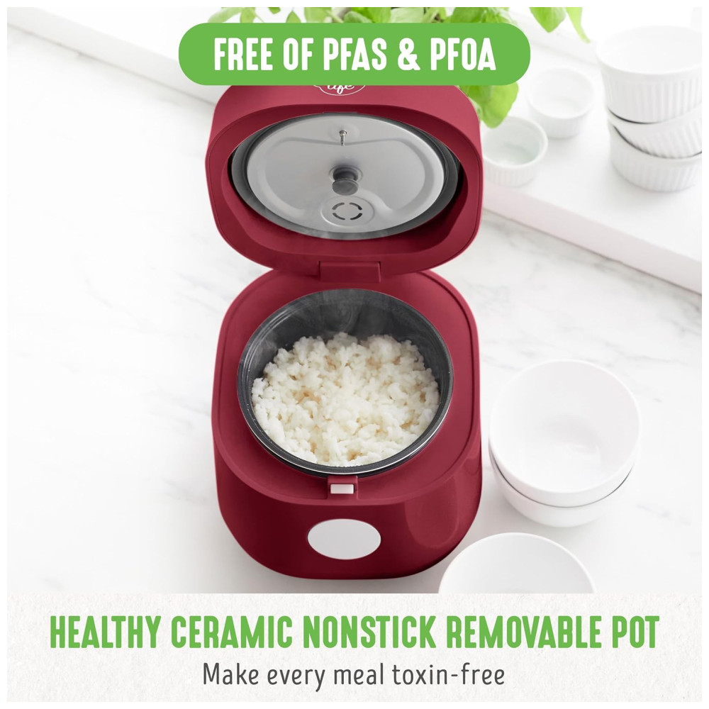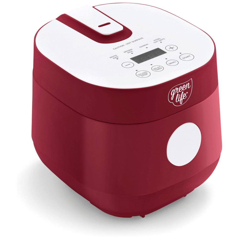 Panela de Arroz Elétrica GreenLife 15L Vermelha Cerâmica Antiaderente PFAS-Free Fuzzy Logic Programável Bowl Removível Lava-louças 110V