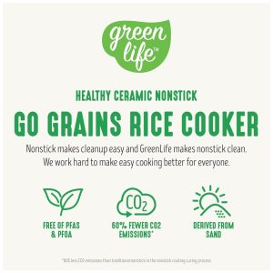 A Panela de Arroz Elétrica GreenLife Go Grains! de 1,5 litros oferece preparo rápido e prático para arroz branco, integral, quinoa e aveia. Possui tecnologia Fuzzy Logic que ajusta temperatura e tempo para textura ideal e sabor preservado. O bowl interno removível é feito em cerâmica antiaderente derivada de areia, livre de PFAS, proporcionando higiene e saúde. Compacta, ideal para cozinhas pequenas e famílias menores. Painel digital com display LED possibilita o uso de funções automáticas, timer ajustável e modo “manter aquecido”. O exterior permanece frio ao toque, trazendo segurança durante o uso. Bowl e acessórios podem ser lavados em lava-louças para facilitar a limpeza. Acompanha copo medidor e espátula dosadora.