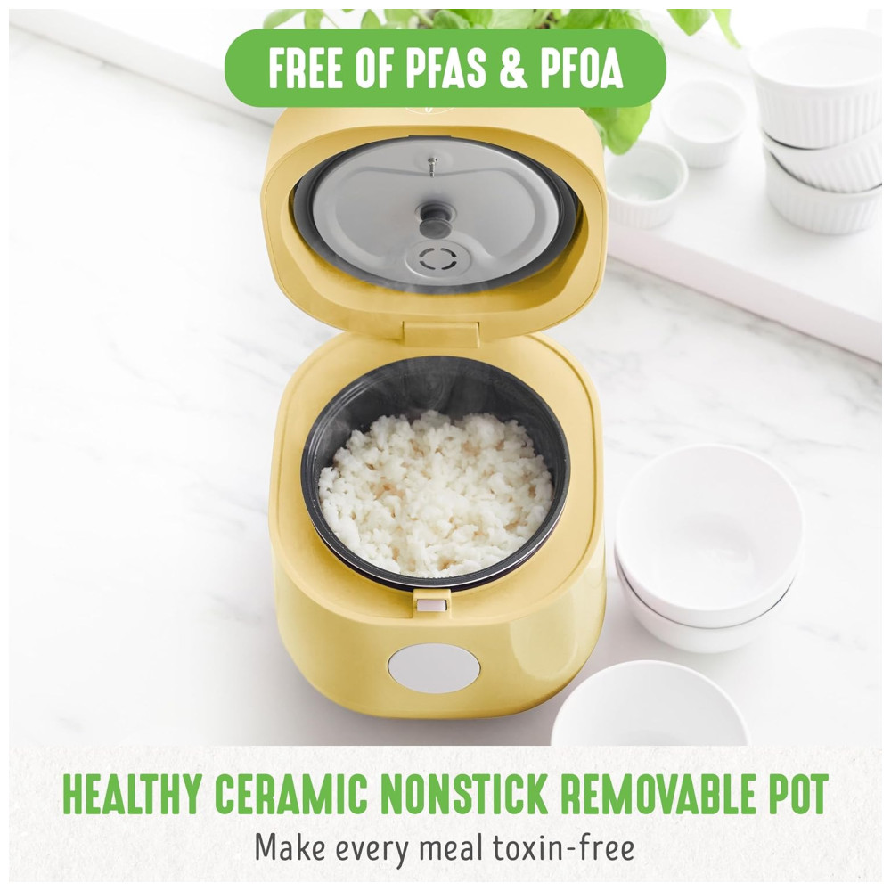 Panela de Arroz Digital GreenLife 4 Xícaras Livre de PFAS e PFOA Potável Cerâmico Removível Seguro para Lava-louças Presets Automáticos.
