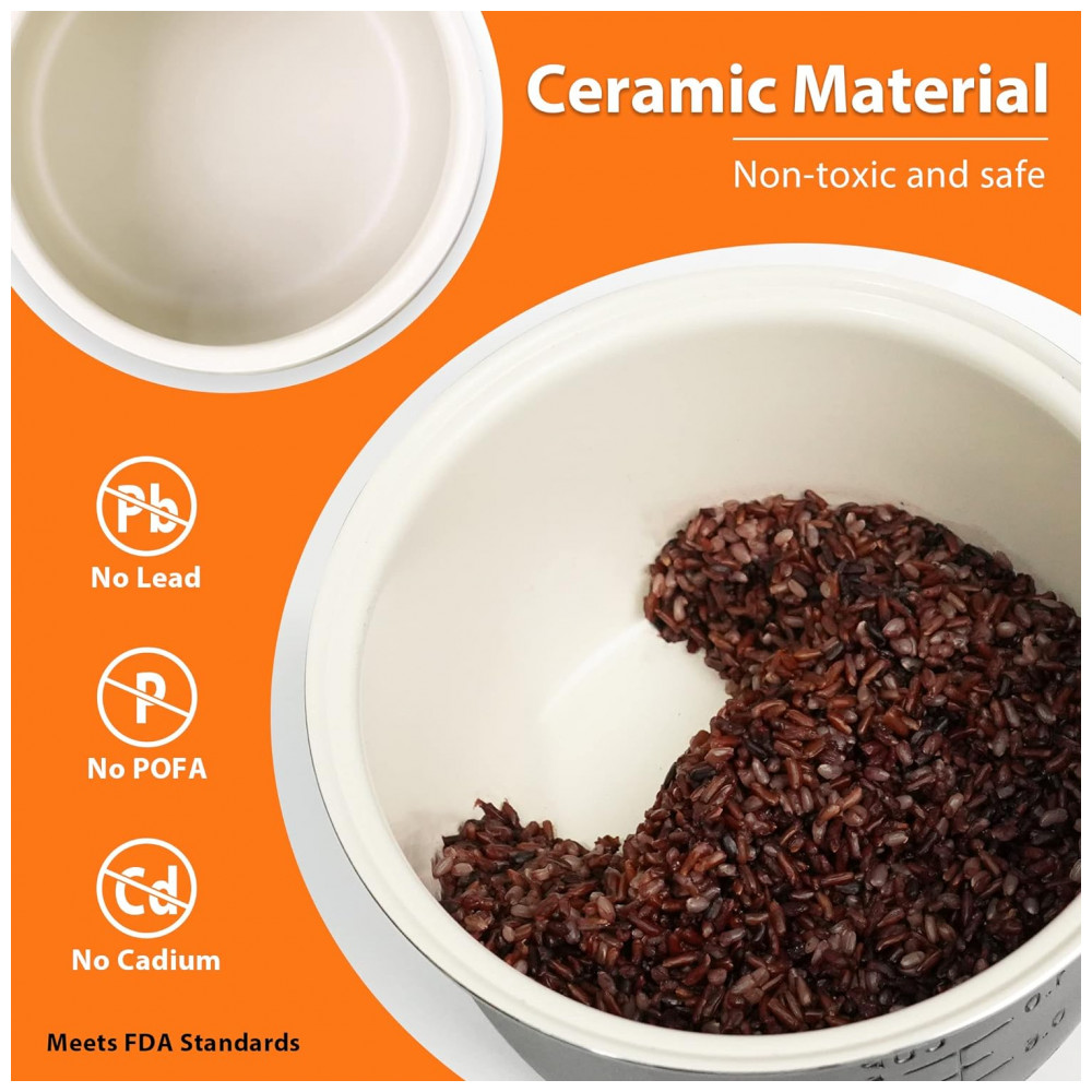 CAPACIDADE Cozimento perfeito com capacidade de até 3 xícaras não cozidas 6 xícaras cozidas, perfeito para uma família individual em crescimento.