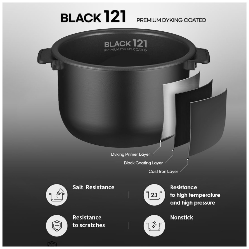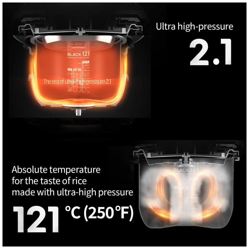 Temperatura Ideal para o Melhor Sabor do Arroz: A primeira panela de pressão de calor ultra-alta da Coreia, atingindo 121 ℃ com 2,1 ATM de pressão especializada para arroz de grãos mistos, proporcionando a temperatura perfeita para um arroz saboroso.