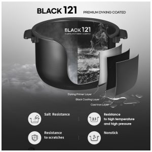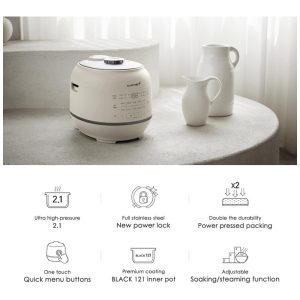 Esta panela elétrica de arroz é perfeita para quem busca um sabor e textura ideais em seu arroz. Com uma temperatura de operação de 121 C , alcançada através da primeira panela de pressão de calor ultra alta da Coreia com uma pressão especializada de 2,1 ATM para arroz de grãos mistos, essa panela garante um cozimento preciso e eficiente.