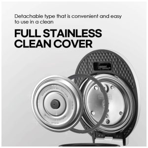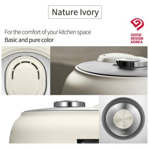 Além disso, ela possui diversas funcionalidades avançadas, como botões de menu rápido de um toque, função de navegação por voz disponível em coreano, chinês e inglês, aquecimento por indução de pressão, modo de economia de energia, limpeza automática, função de reserva e tampa de limpeza de aço inoxidável fácil e removível.