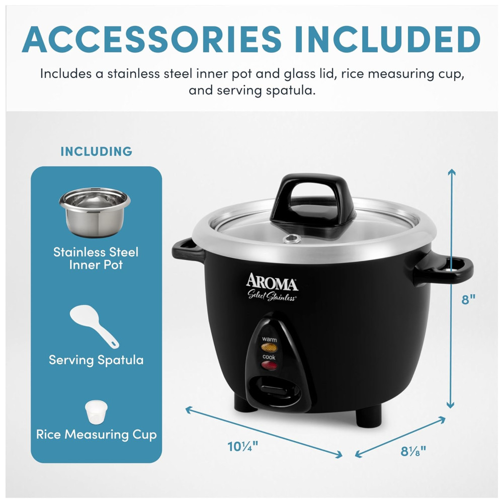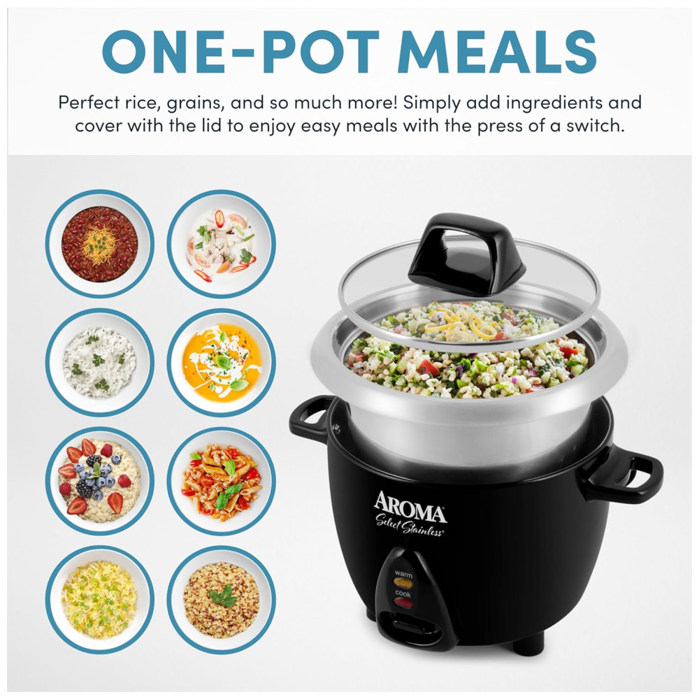 TAMANHO COMPACTO Esta poderosa panela de arroz é uma ferramenta de cozinha obrigatória em um pacote pequeno. A capacidade de 6 xícaras é perfeita para arroz, omeletes, sopas, aveia, massas e muito mais.