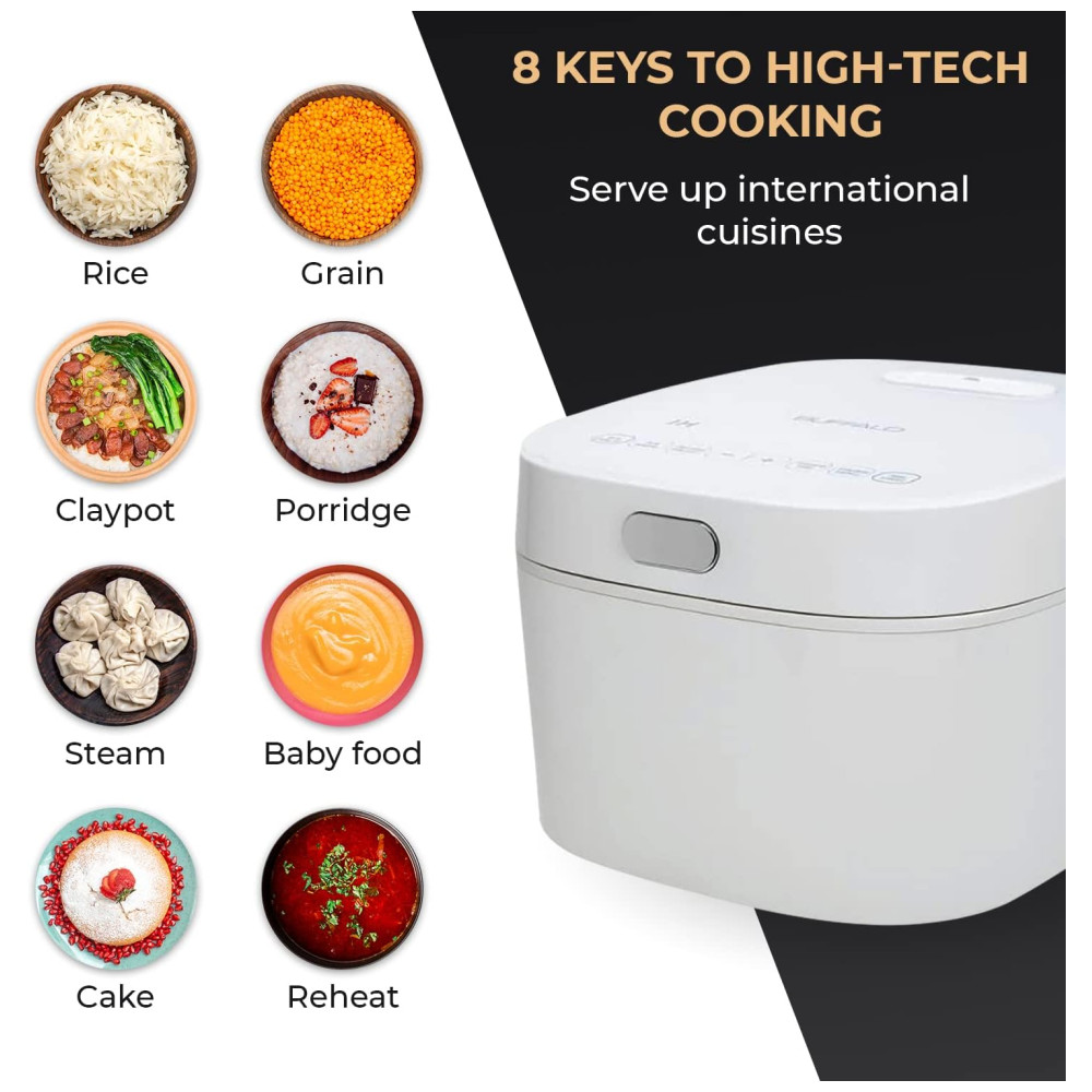 Panela de Arroz Elétrica 2L com Painel de Controle Digital 1000W Branca 110v BUFFALO Branco