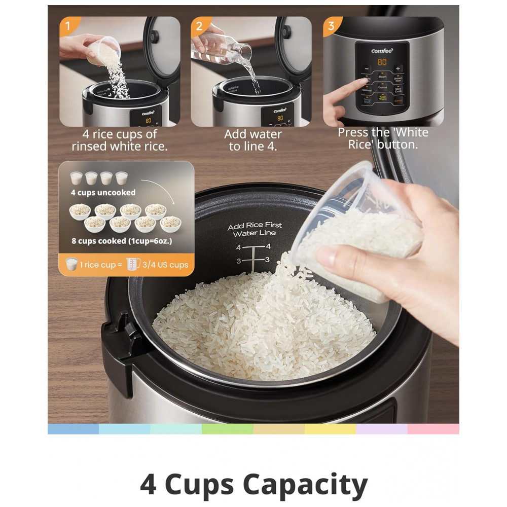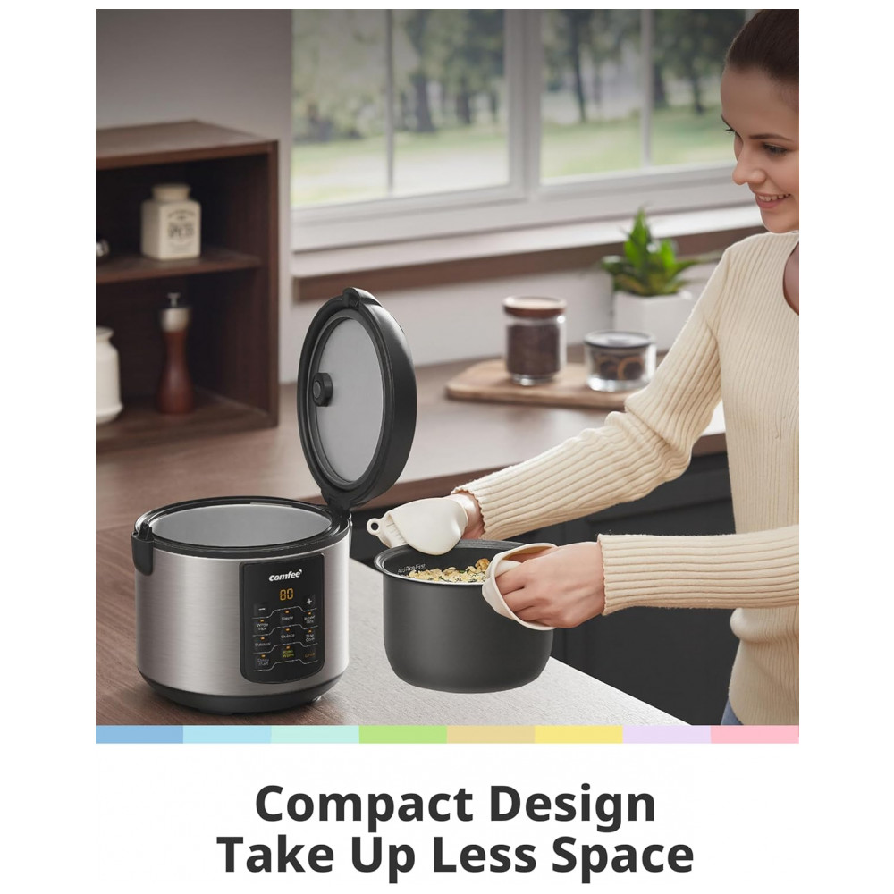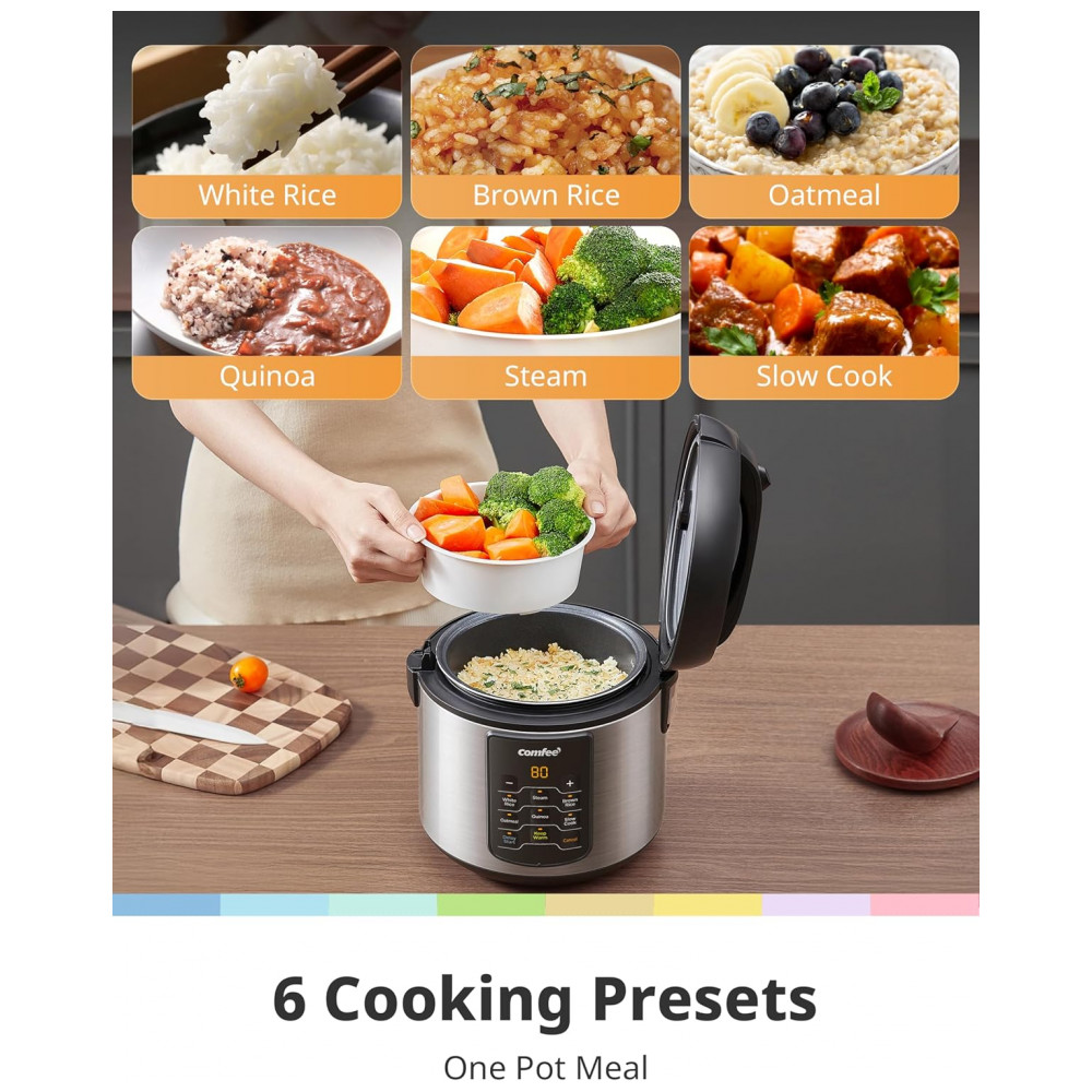 Panela de Arroz Elétrica 6 em 1 Capacidade 1.8L Programável 650W Aço Inoxidável 110v COMFEE CRS2010BS Prateado