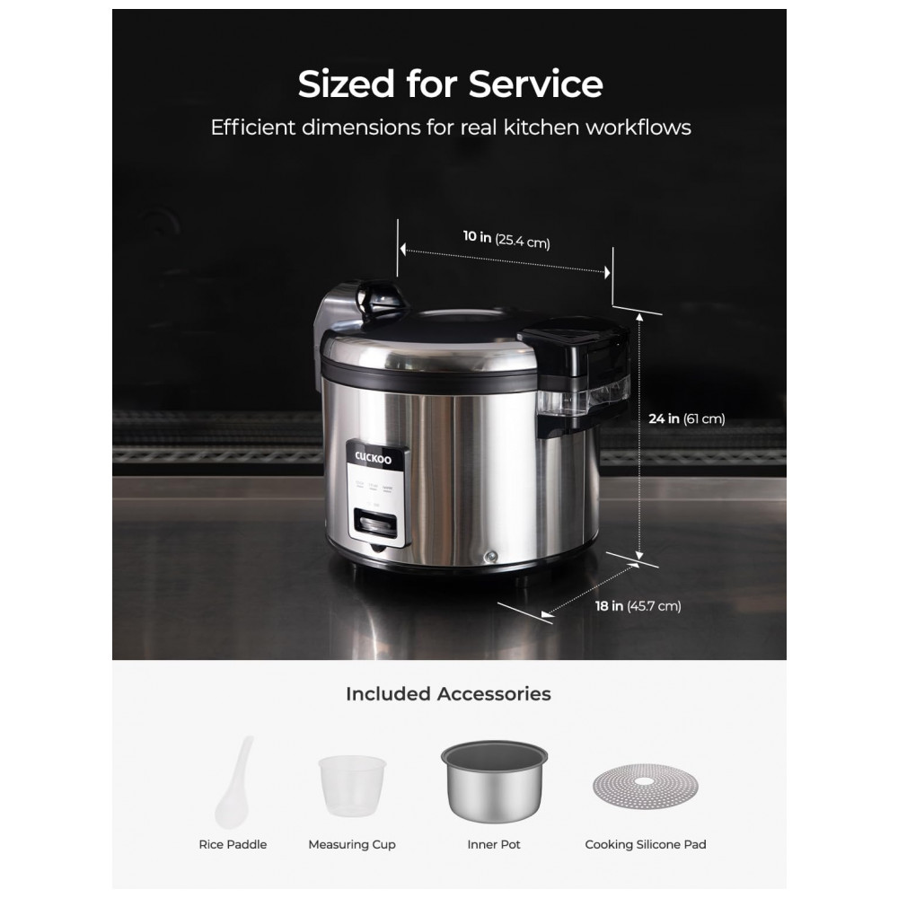 CAPACIDADE Sua capacidade para 60 xícaras cozidas é grande o suficiente para garantir que seu suprimento de arroz ou grãos nunca acabe quando for necessário. Perfeito para restaurantes, buffets e hotéis.