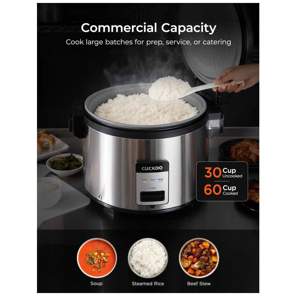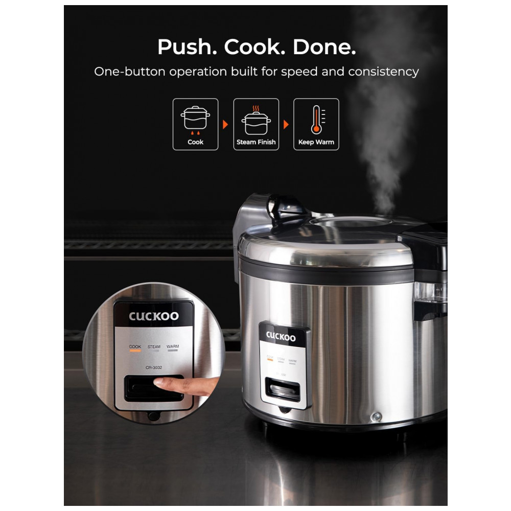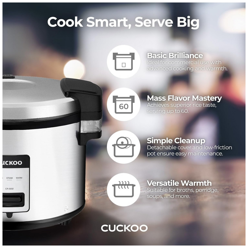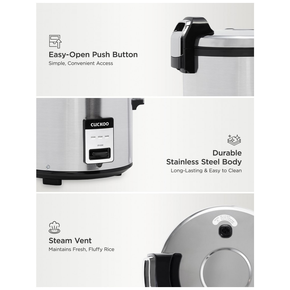 Panela de Arroz Elétrica 72 Litros em Aço Inoxidável com Modo Quente Automático e Tampa Interna Destacável 110V CUCKOO CR3032 Prata