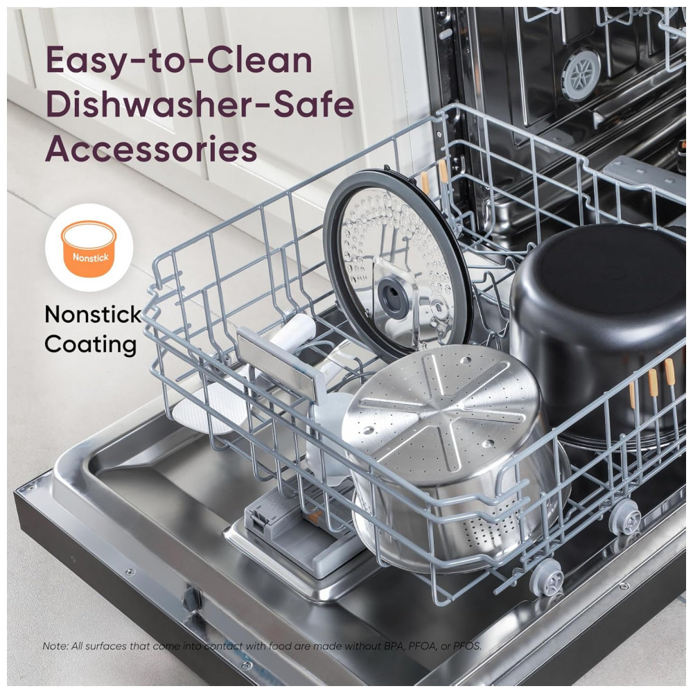 Mais saudável e todas as superfícies que entram em contato com seus alimentos são feitas sem BPA, PFOA ou PFOS.