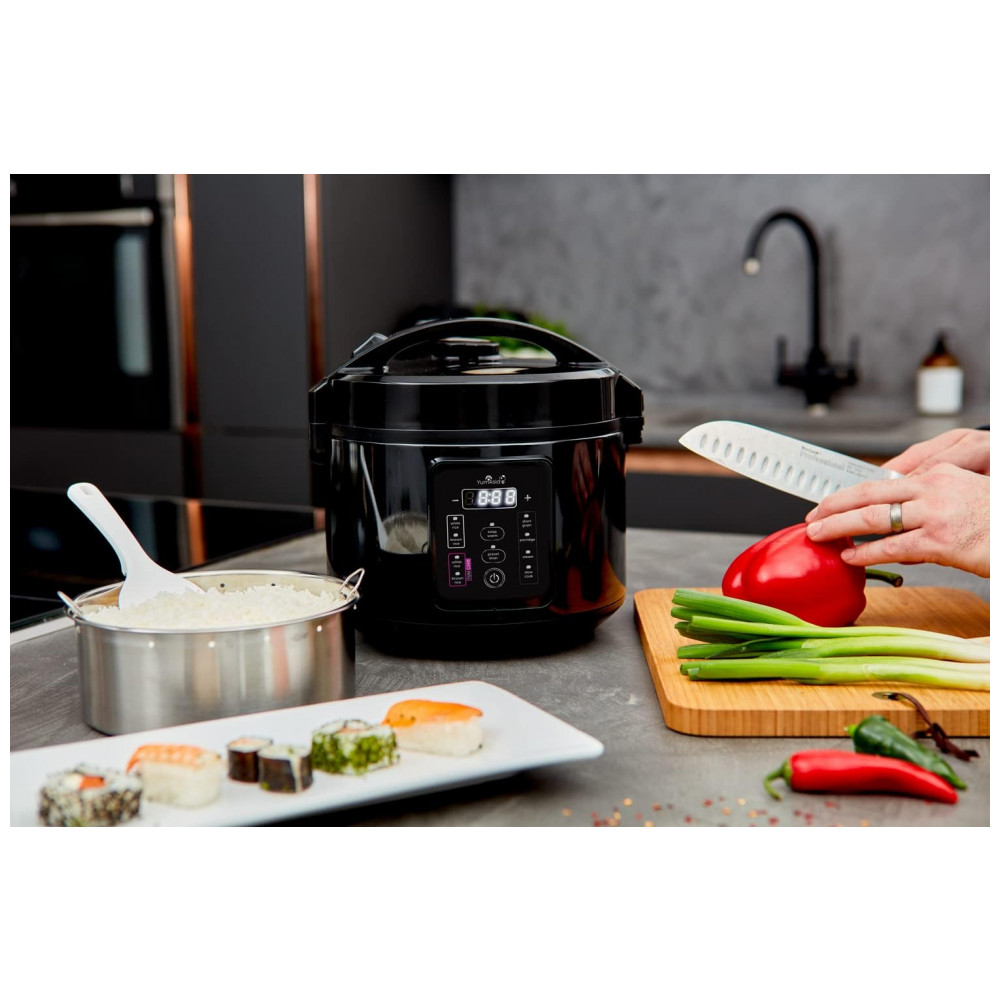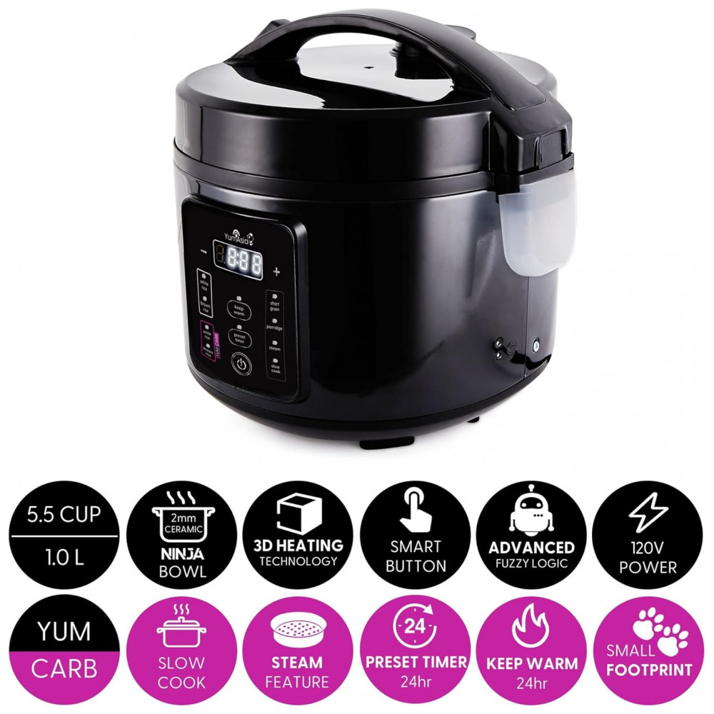 Panela de Arroz Elétrica até 5 Xícaras não Cozidas com 3 Funções 110V 500W Yum Asia Preta
