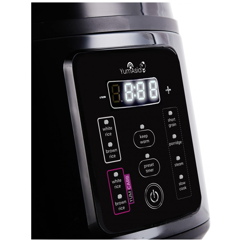 ARROZ PERFEITO AO TOQUE DE UM BOTÃO Configurações de arroz branco, grãos longos, grãos curtos, sushi e arroz integral com recurso de cozimento saudável com baixo teor de carboidratos YumCarb. Cozinhar em várias fases significa textura, sabor e aroma perfeitos