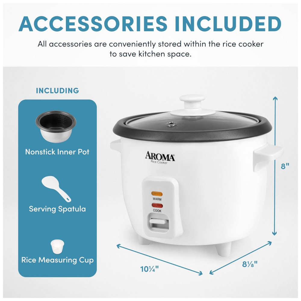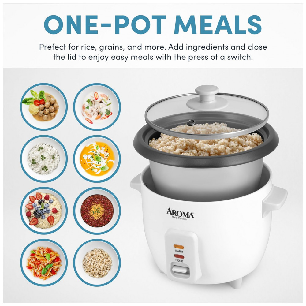 Panela de Arroz Elétrica até 6 xícaras não Cozidas 110V 500W Aroma Housewares Branca