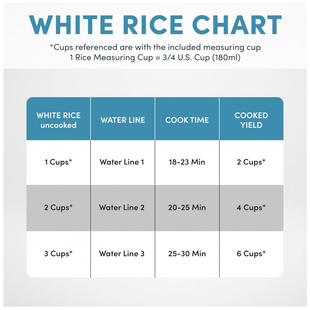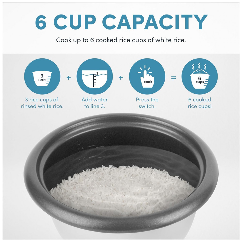 Prepara perfeitamente 2 a 6 xícaras de qualquer variedade de arroz cozido.
