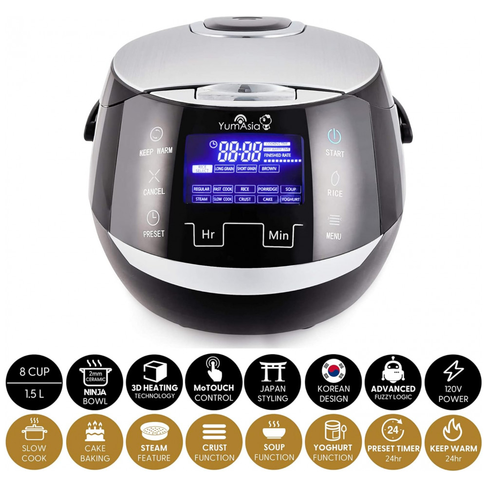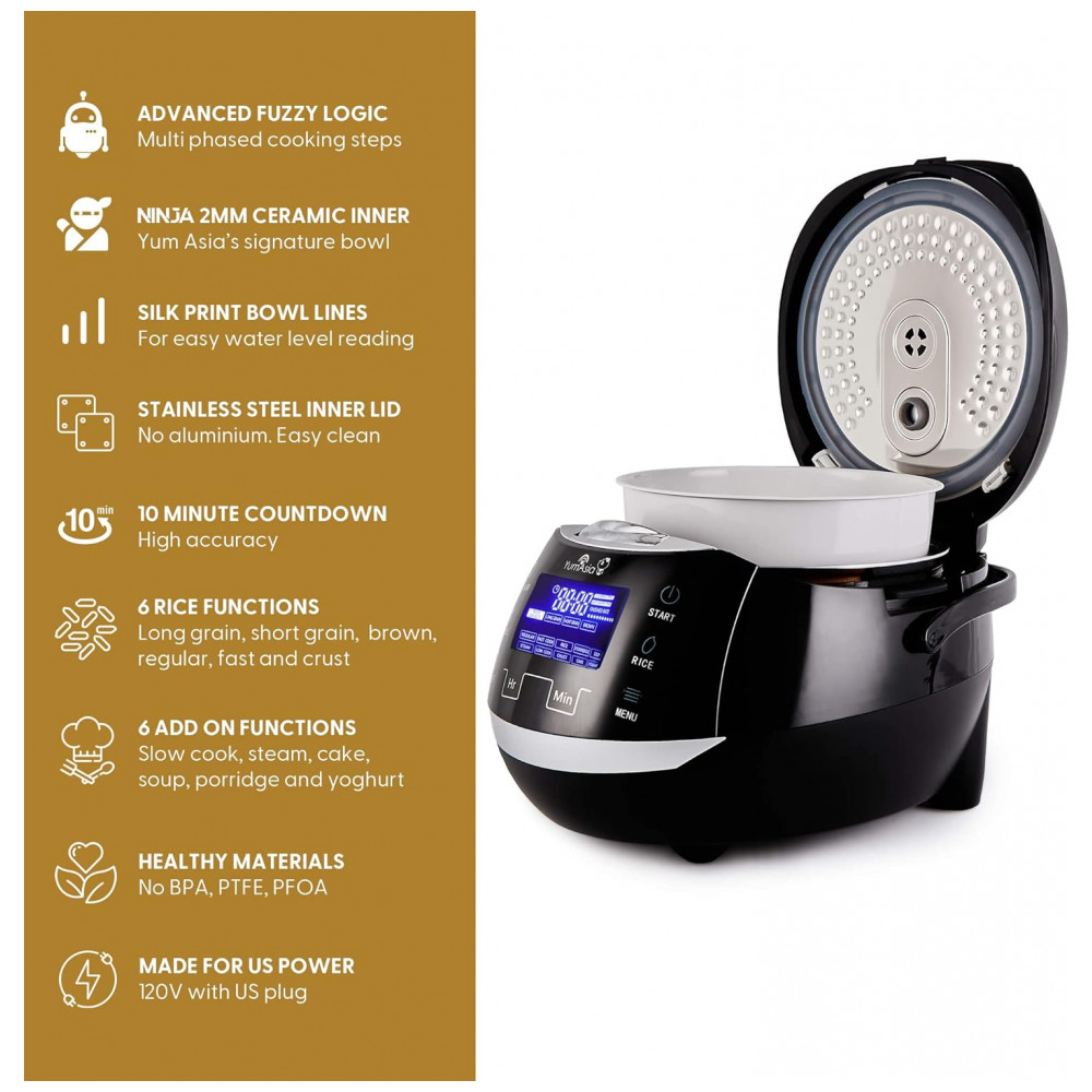 Panela de Arroz Elétrica até 8 Xícaras Não Cozidas 110V 860W Yum Asia Preta