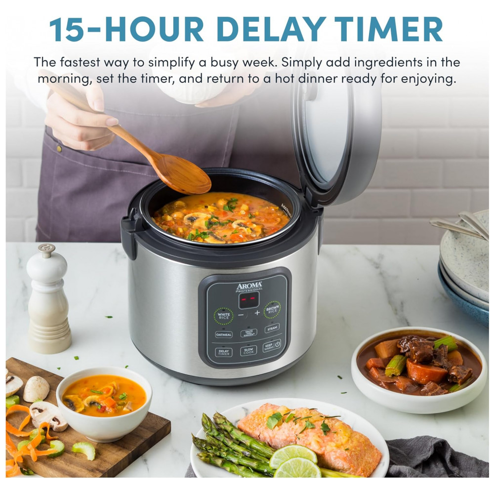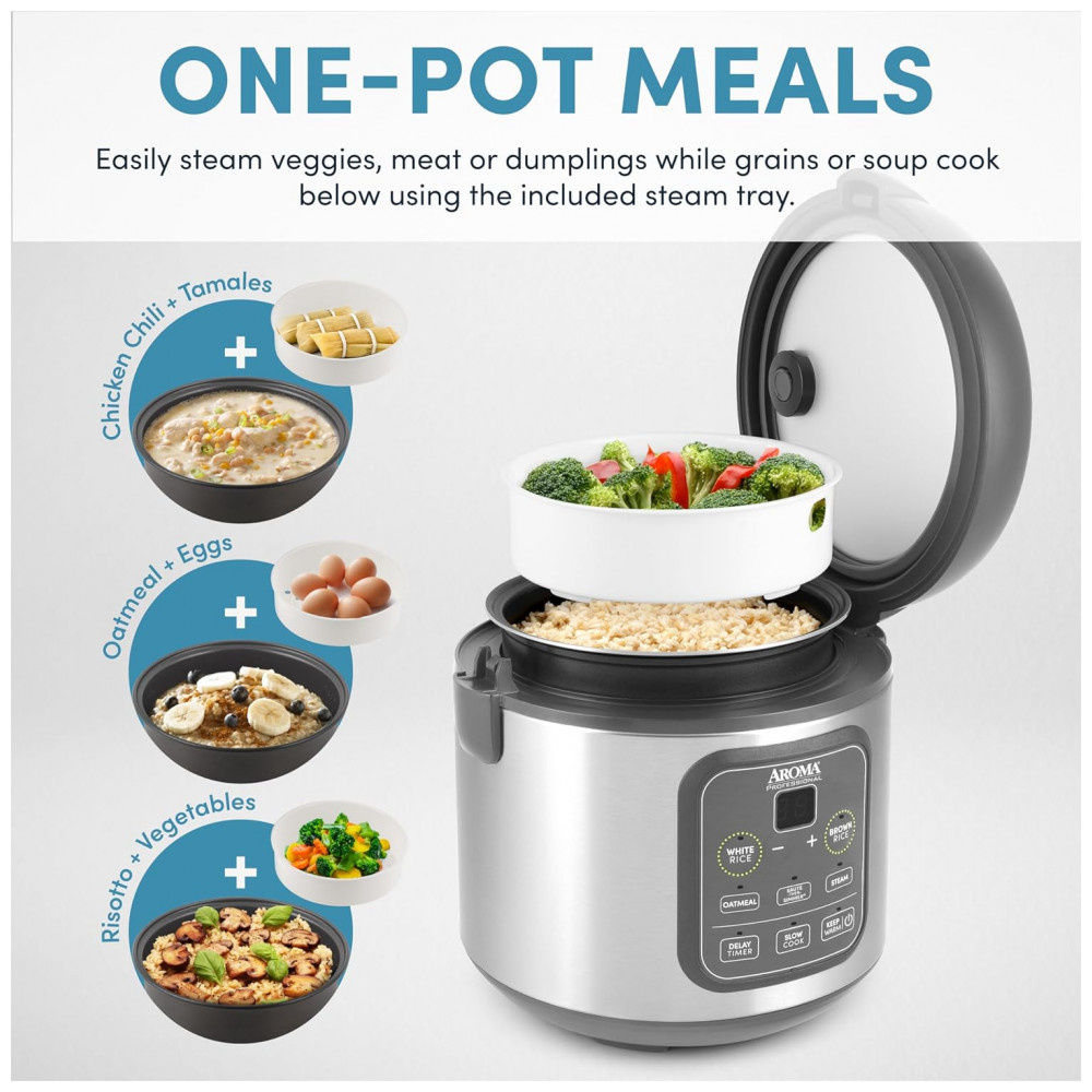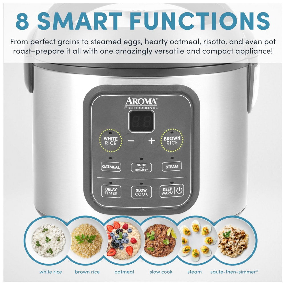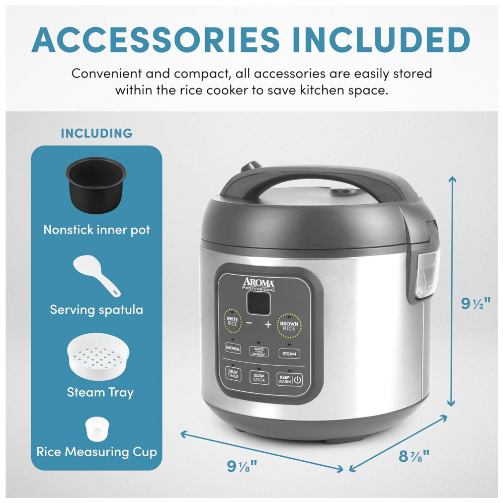 Panela de Arroz Elétrica até 8 xícaras não Cozidas com Painel de Controle 110V 450W Aroma Housewares 994SG Cinza