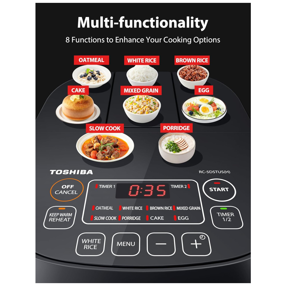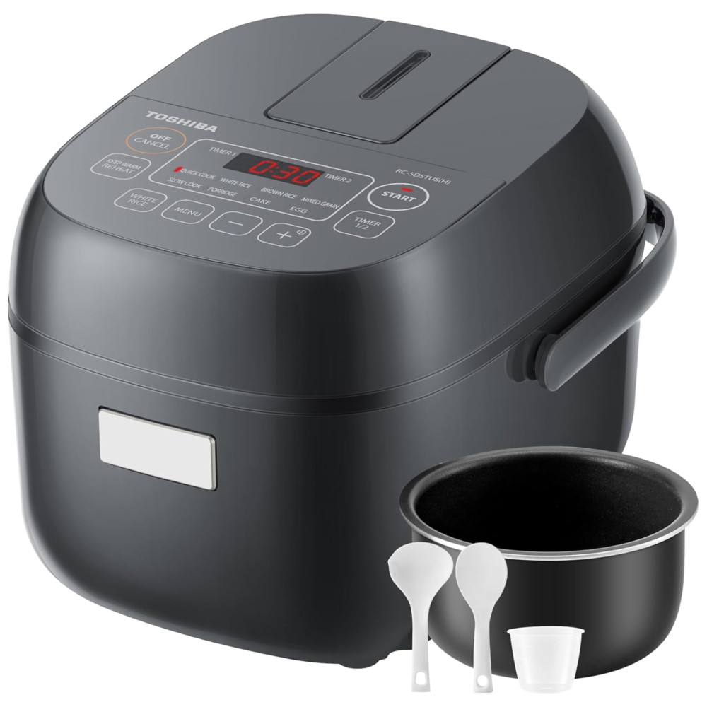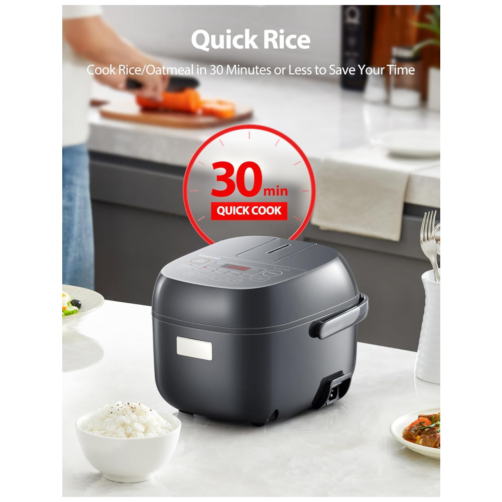 Panela de Arroz Elétrica Capacidade 3 Xícaras com Tela LCD e 8 Funções de Cozimento para Arroz e Grãos 110V Toshiba Cinza