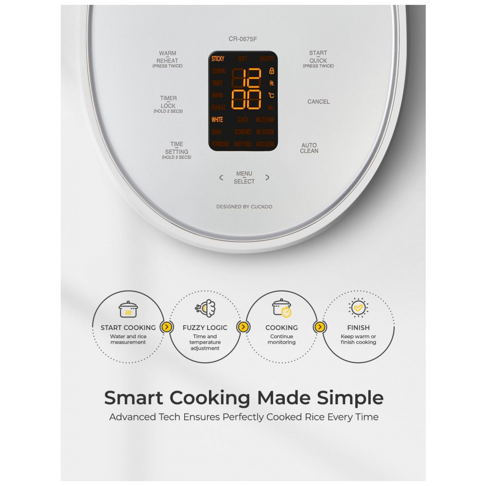 FÁCIL DE USAR Crie refeições sem esforço com recursos como controles digitais fáceis de usar, um display LCD moderno, um copo medidor de arroz incluído para medição precisa e tecnologia Fuzzy Logic projetada para cozinhar arroz sem falhas todas as vezes