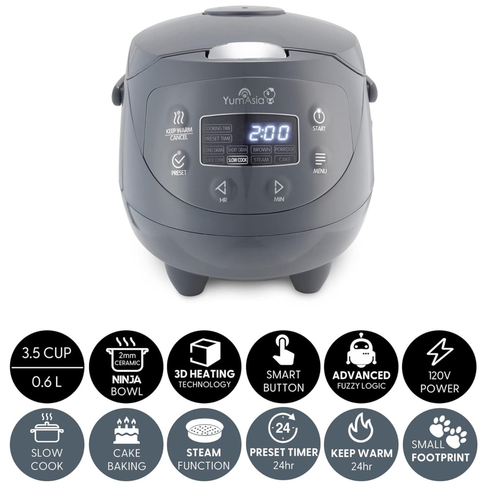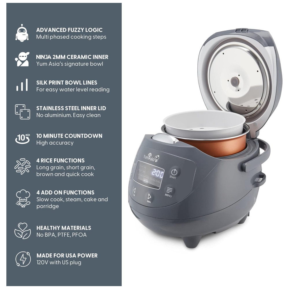 Panela de Arroz Yum Asia Panda Mini com Tigela de Cerâmica Ninja e Lógica Fuzzy Avançada (35 xícaras 063L) 4 Funções para Arroz e Multicozinhar.