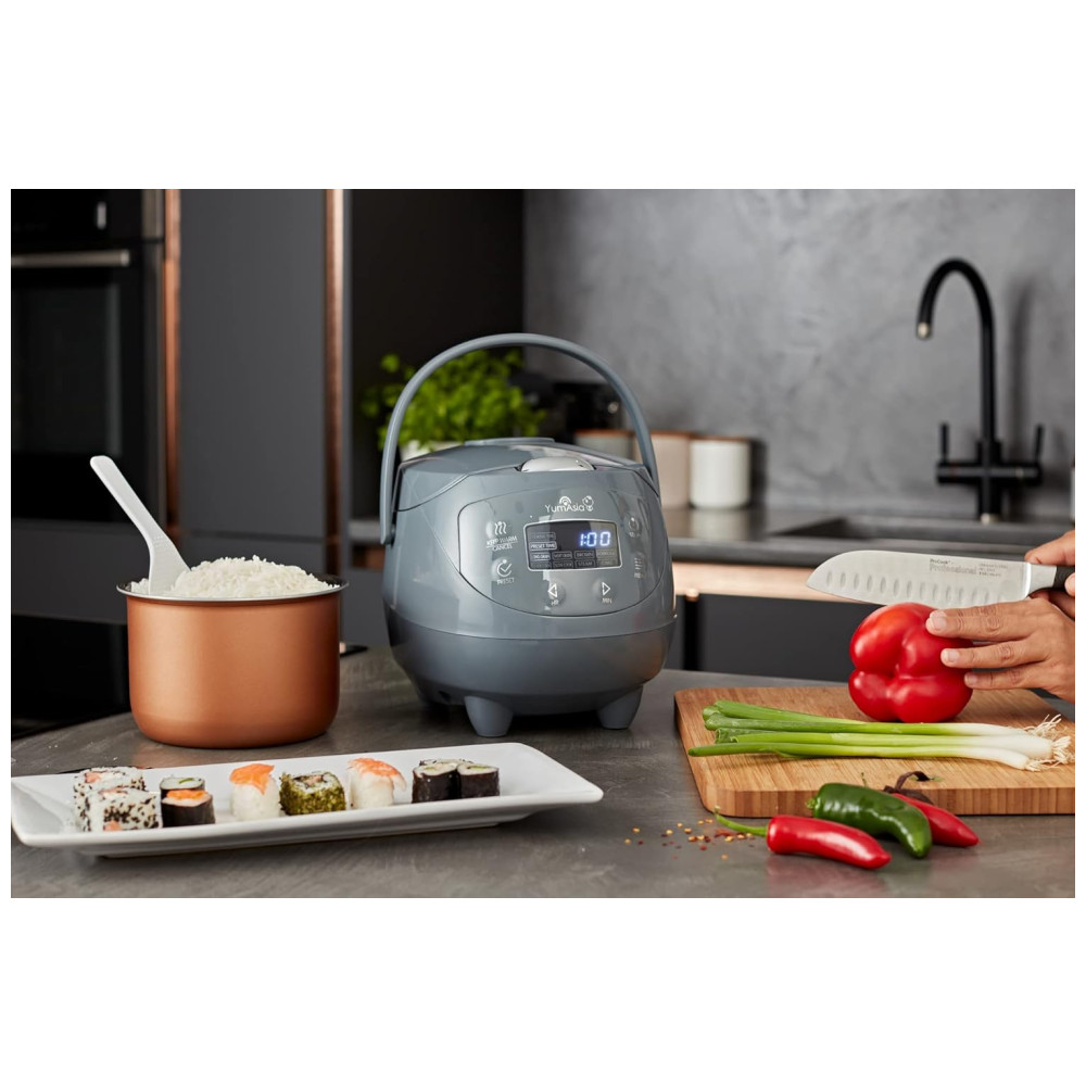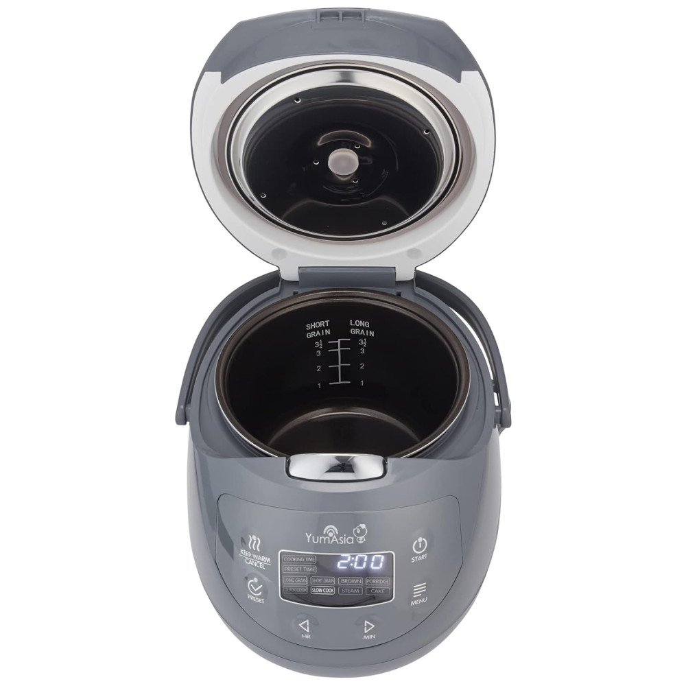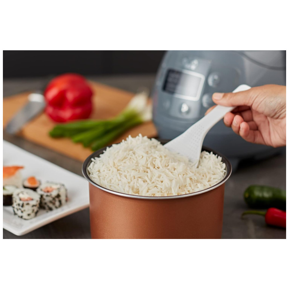 Tecnologia de aquecimento 3D com controle digital de 7 fases, com opções úteis adicionais, como vapor, mingau, cozimento lento e assar bolo. Timer programável de 24 horas e função manter aquecido. Contagem regressiva de 10 minutos para funções de arroz.