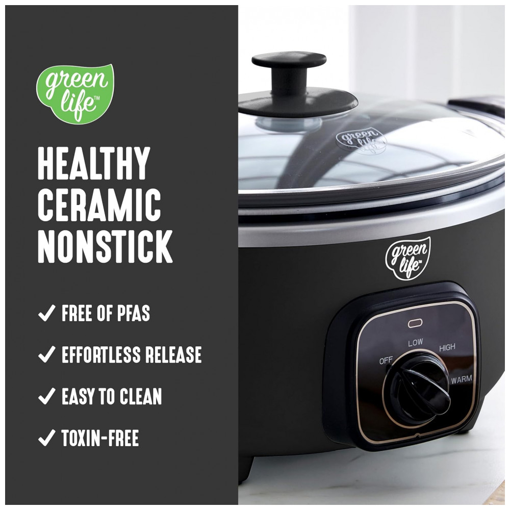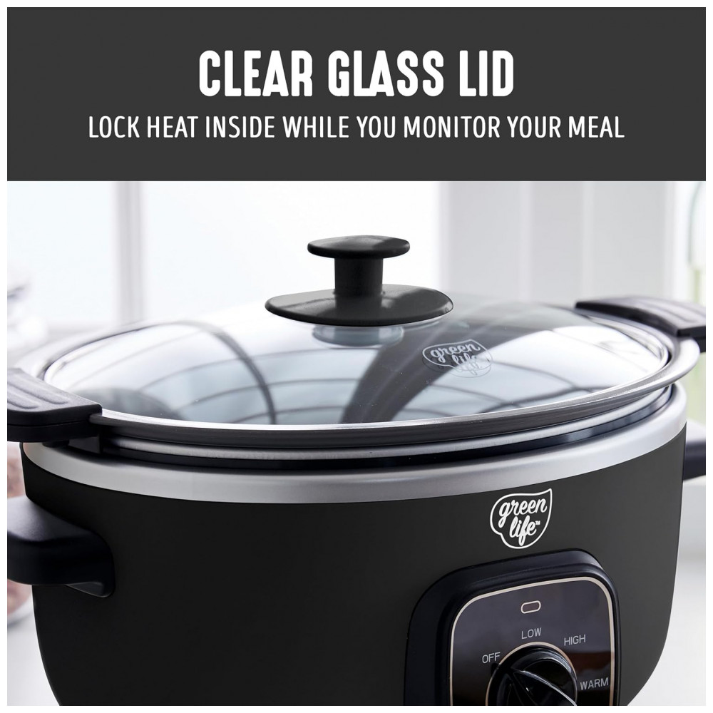 Panela de Cozimento Lento GreenLife 331 Litros Revestimento Cerâmico Antiaderente Livre de PFAS Programável Mantém a Temperatura