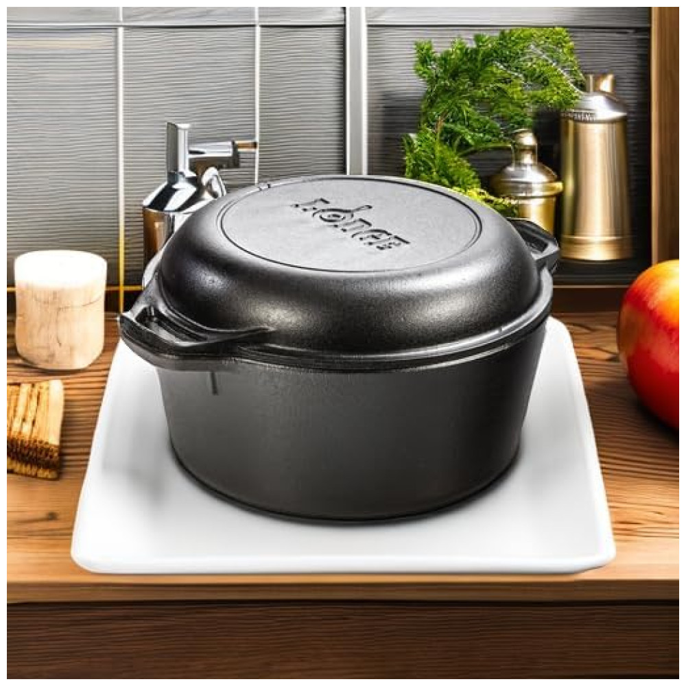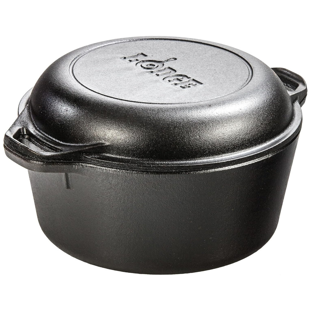 Panela de Ferro Fundido 5L Pré Temperada com Alça de Metal LODGE L8DDKPLT Prateado