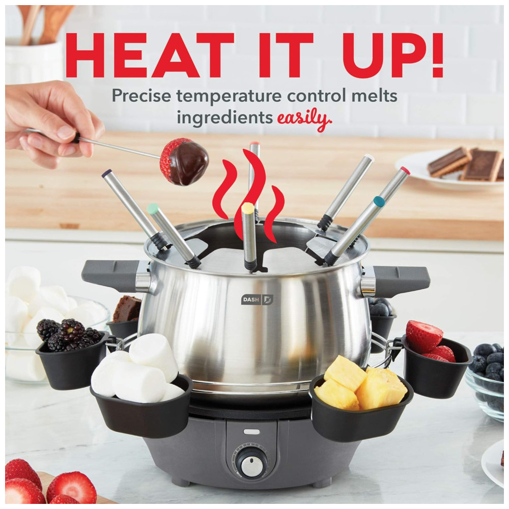 Panela de Fondue Elétrica Capacidade 2.8L 8 Garfos Aço Inoxidável 110v DASH DFM250GBGY04 Prateado