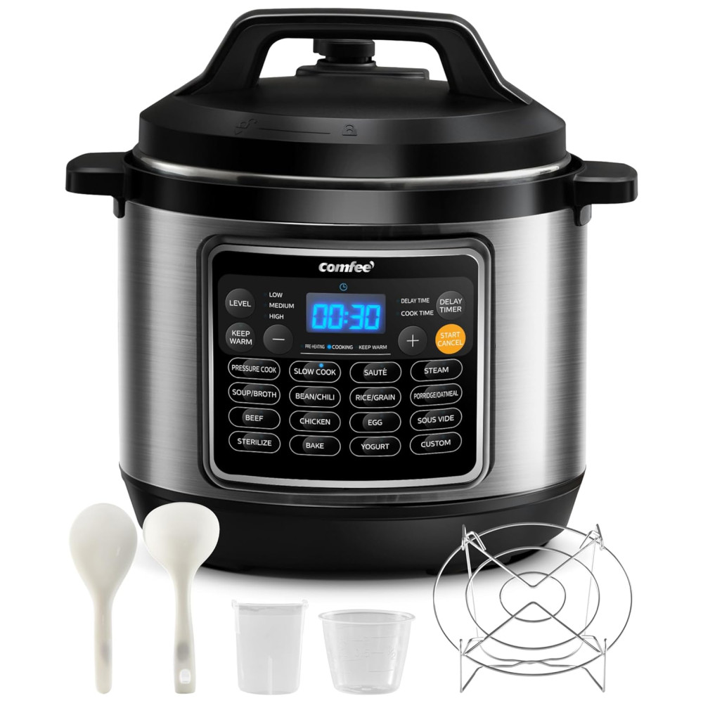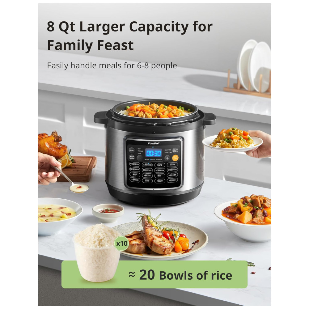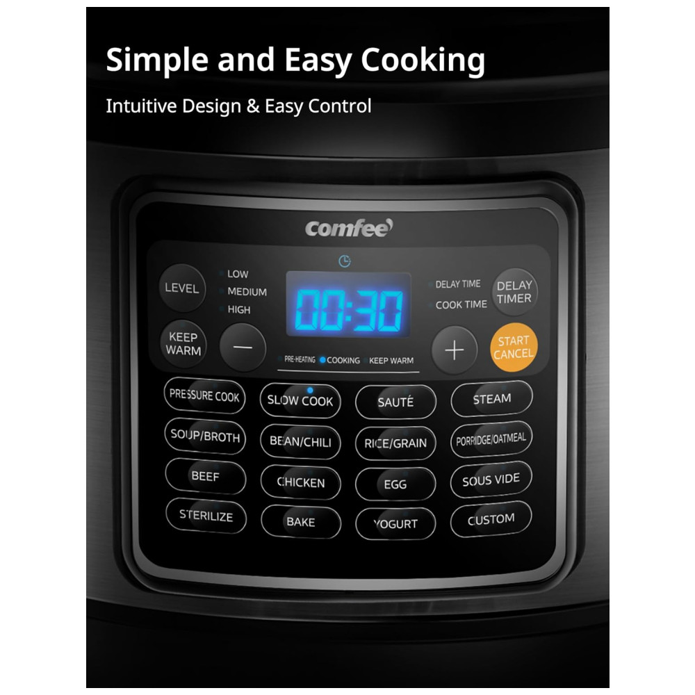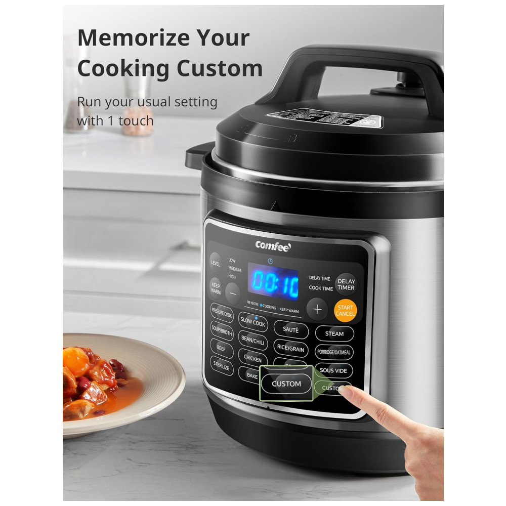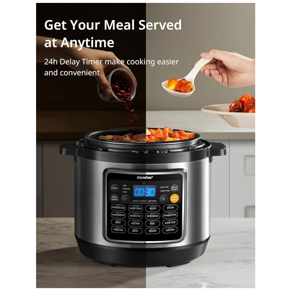 Otimize sua cozinha e prepare refeições incríveis com a Panela de Pressão Elétrica COMFEE’ 16 em 1, garantindo praticidade, segurança e sabor para toda a família!