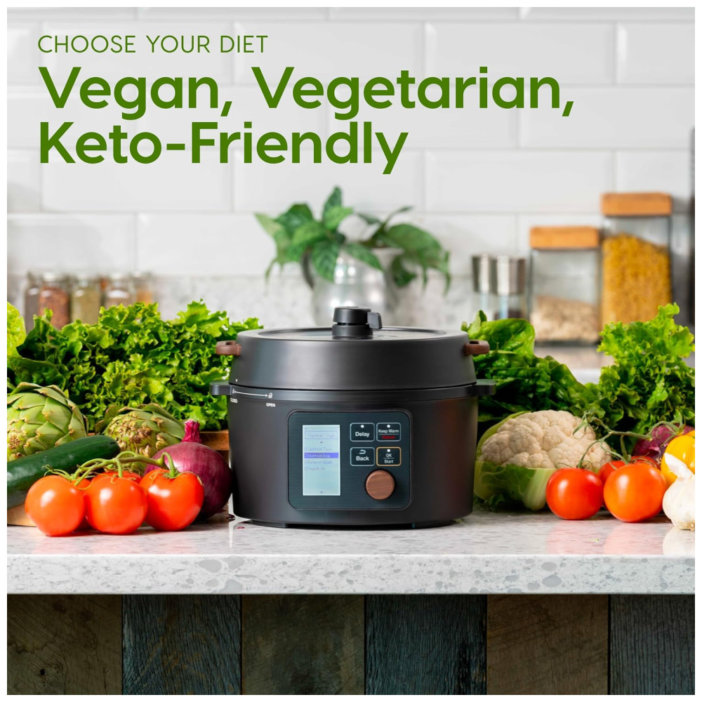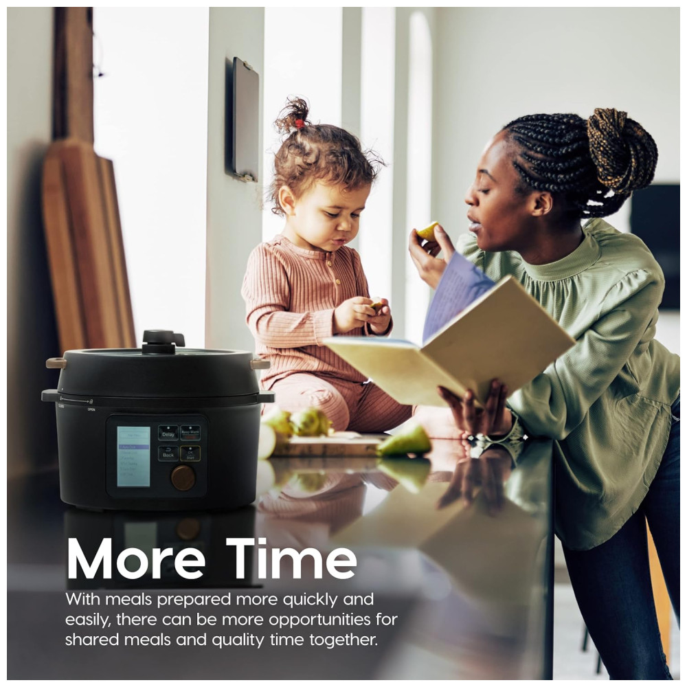 Mais de 110 pratos pré-programados: Carregada com configurações para mais de 110 receitas populares, como Rosbife, Sopa de Legumes, Lasanha, Purê de Batatas e Bacalhau Ensopado, muitos dos quais podem ser programados com a função de Início Programado.