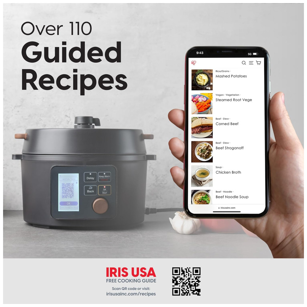 Panela de Pressão Elétrica 3 Litros 8 em 1 com Funções Programáveis 110V 800W IRIS USA Preta