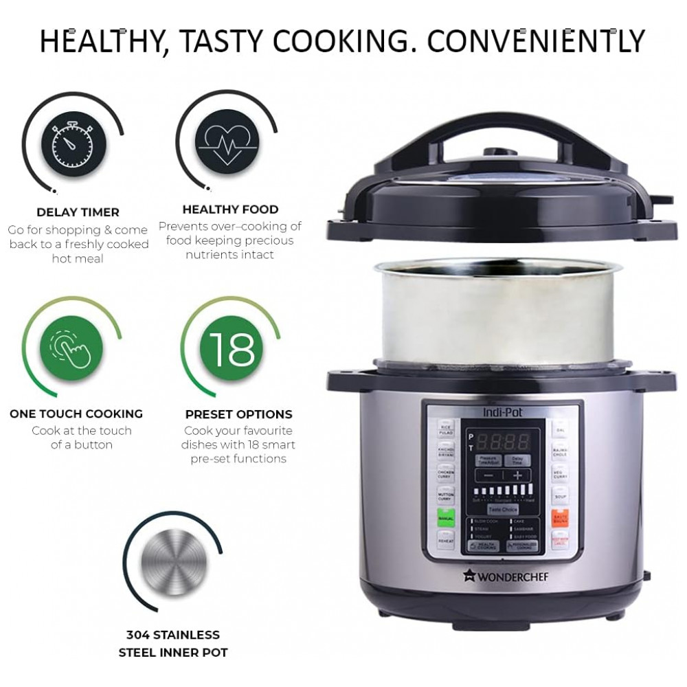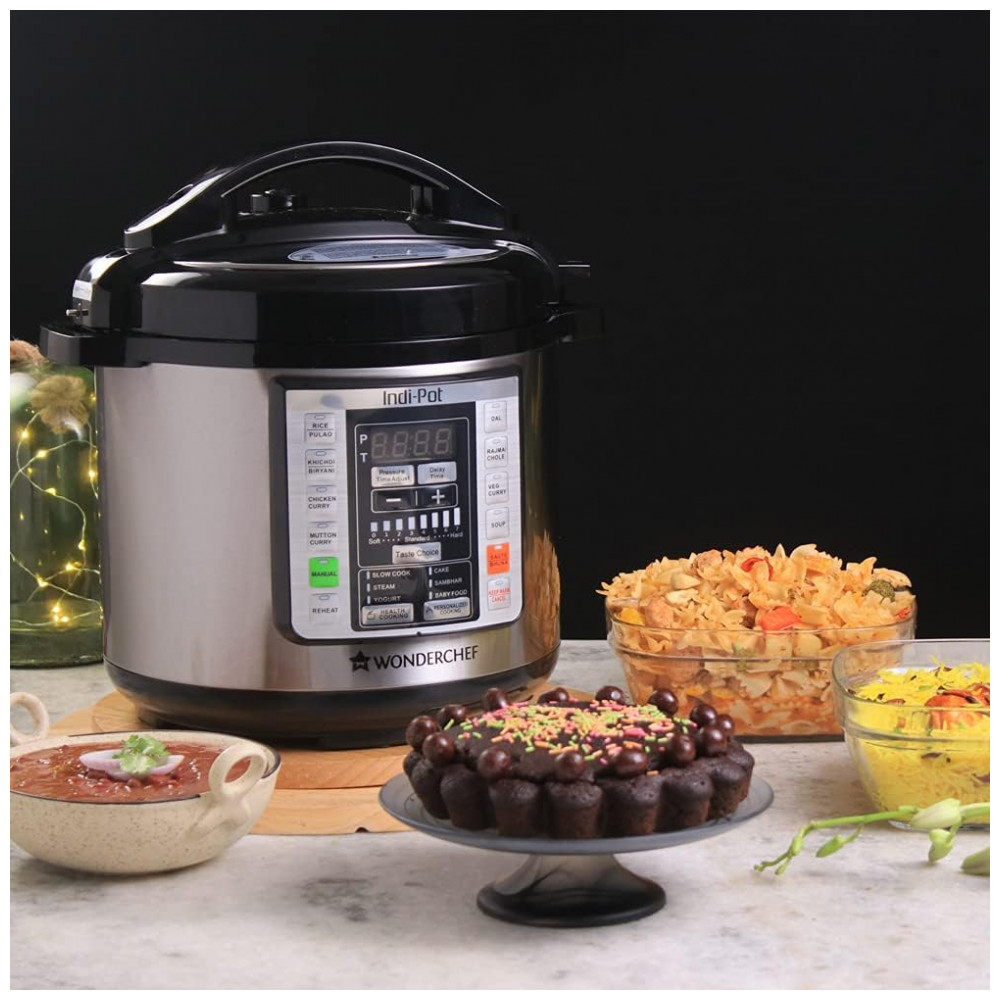 Apresentando a Panela de Pressão Multiuso Programável Wonderchef 7 em 1, 6 Litros, em Aço Inoxidável: perfeita para a Cozinha Indiana e Internacional!