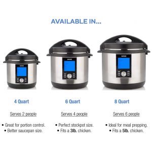 Possui mais de 33 configurações programáveis, incluindo: Ovos Cozidos, Carnes, Feijões, Sopa, Risoto, Vegetais, Omelete, Cheesecake e muito mais! A função Arroz Branco cozinha o arroz como uma panela tradicional, utilizando apenas vapor. A função Flex permite usar a unidade como panela de pressão ou panela tradicional. Já a função Iogurte oferece um processo fácil de 2 etapas para preparar iogurte caseiro.