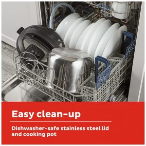 LIMPEZA RÁPIDA E FÁCIL lados resistentes à impressão digital com tampa segura para máquina de lavar louça, panela interna e acessórios.