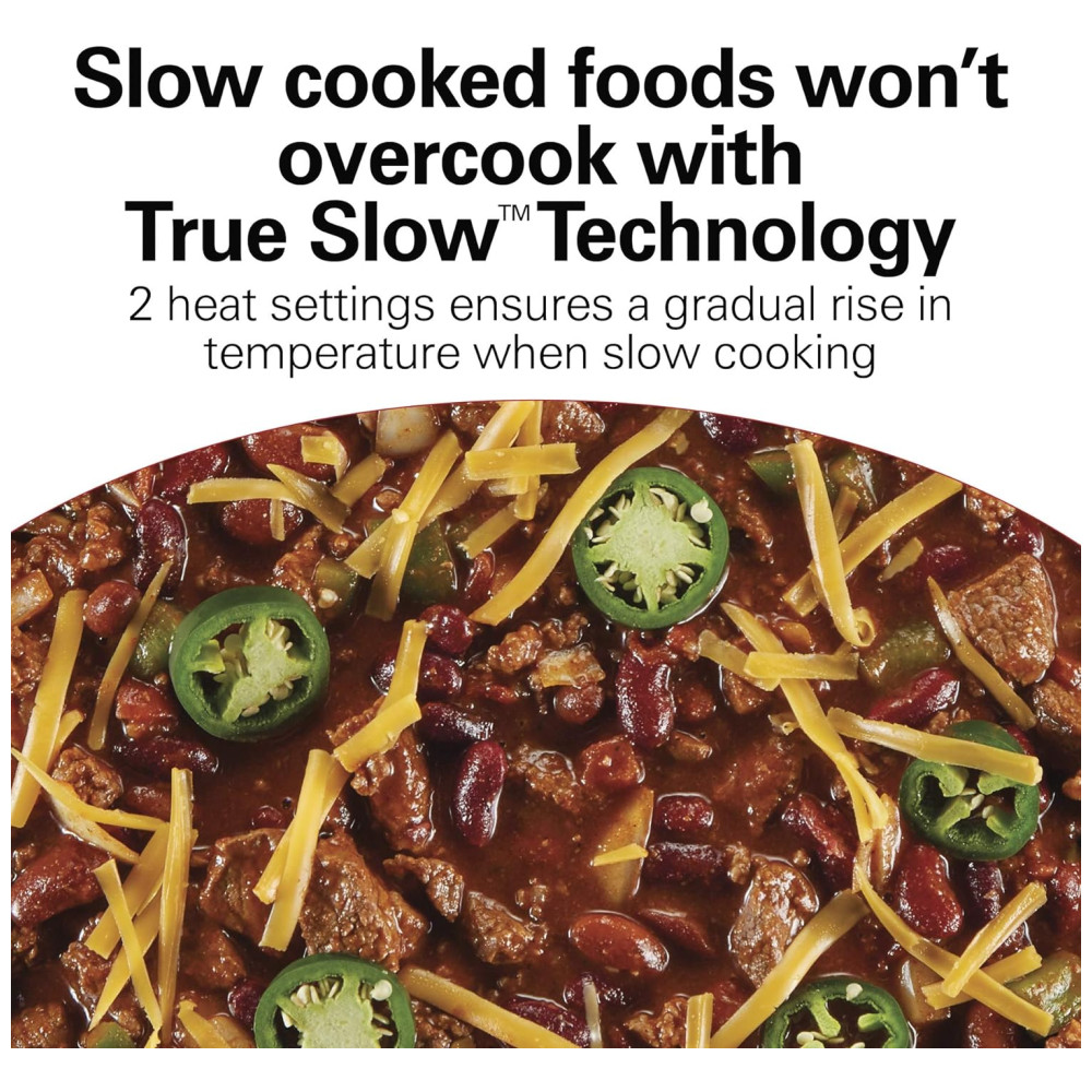 Alimentos Não Cozinham Demais: A tecnologia True Slow Cook, com 2 níveis de calor, garante um aumento gradual da temperatura, resultando no cozimento clássico e uniforme que você espera de uma panela de cozimento lento.