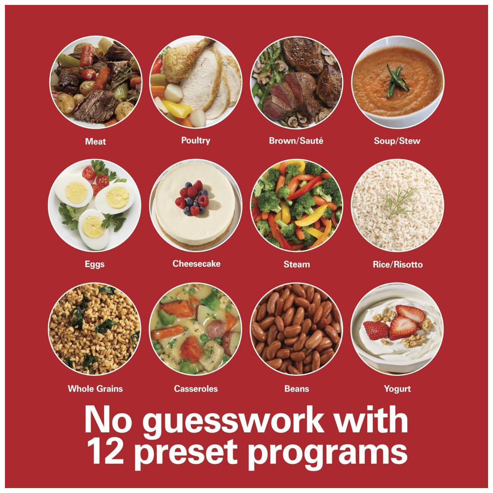 7 Aparelhos em 1: Esta panela multifuncional é uma panela de pressão, panela de cozimento lento, panela de arroz, vaporizador, frigideira para refogar, panela para cozinhar ovos e iogurteira, com 12 programas pré-definidos para facilitar seu dia a dia.
