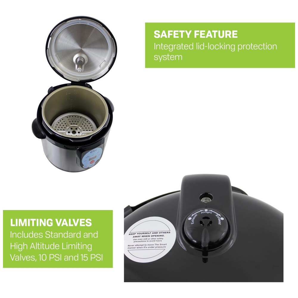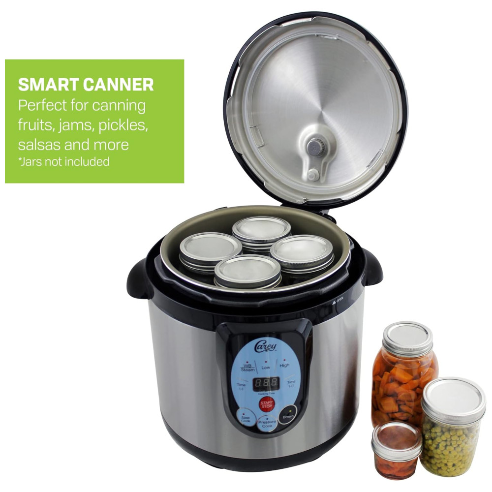 Apresentando a Panela de Pressão e Envasadora Elétrica CAREY DPC-9SS Smart, com capacidade de 9 litros, uma solução multifuncional que combina praticidade e segurança na sua cozinha! Projetada para envasamento sob pressão, cozimento sob pressão, cozimento a vapor e cozimento lento, esta panela oferece versatilidade para todas as suas necessidades culinárias.
