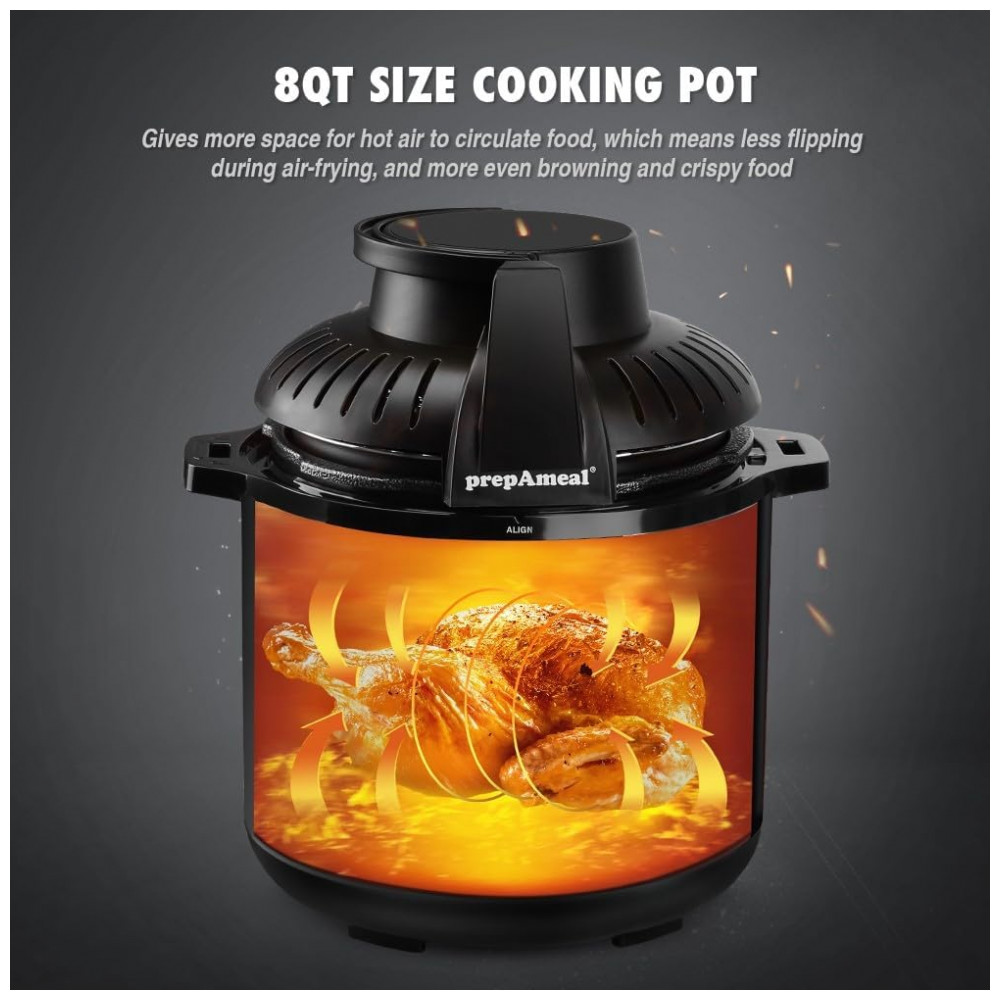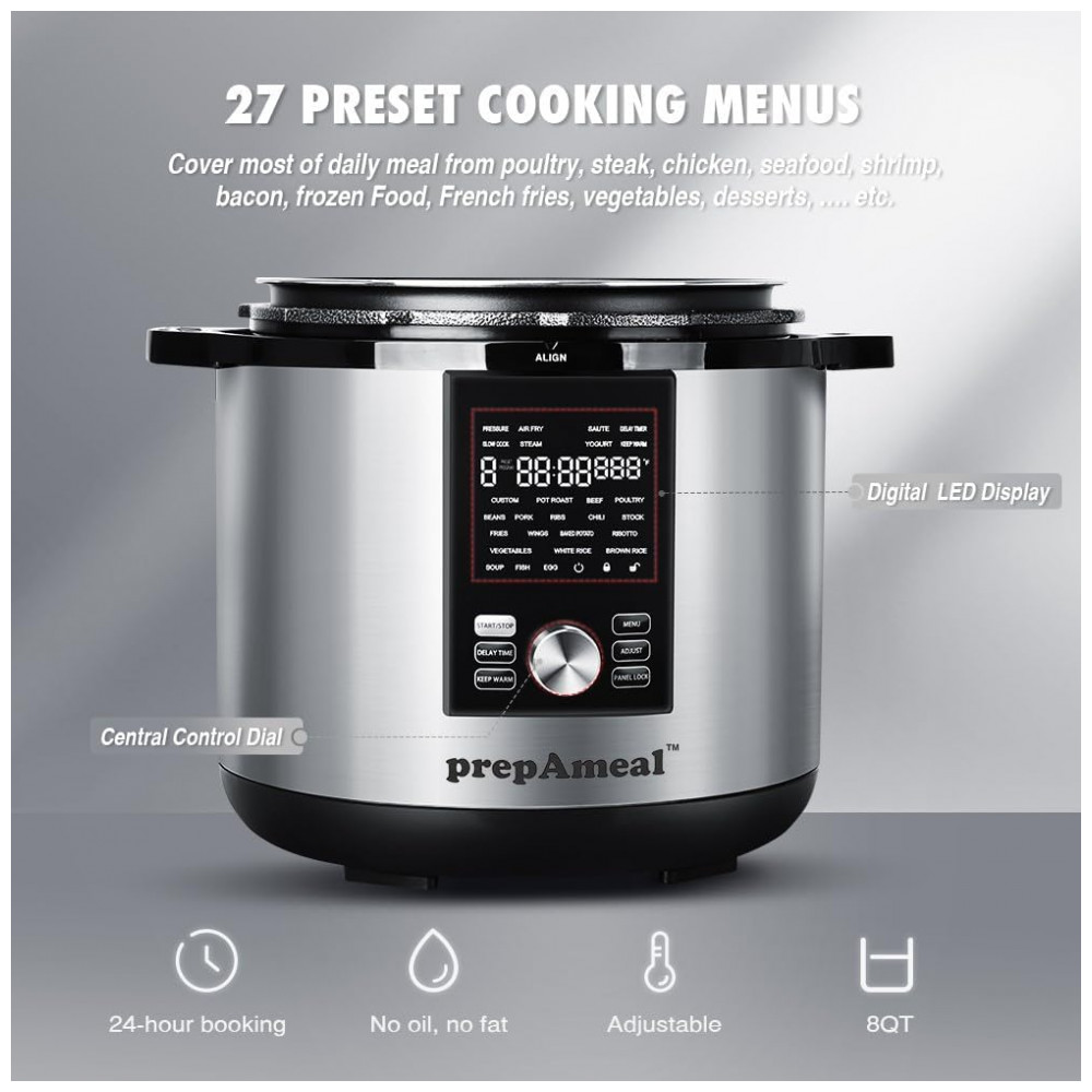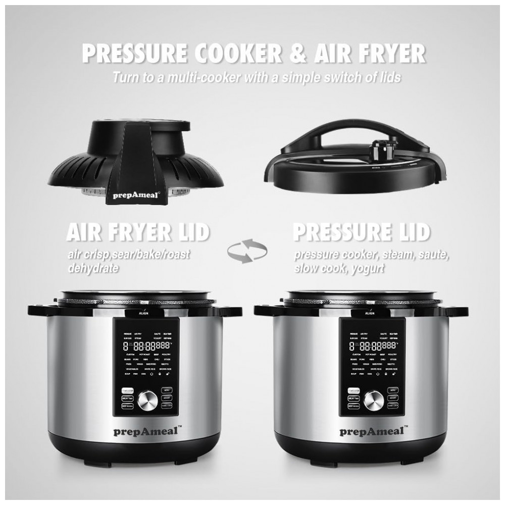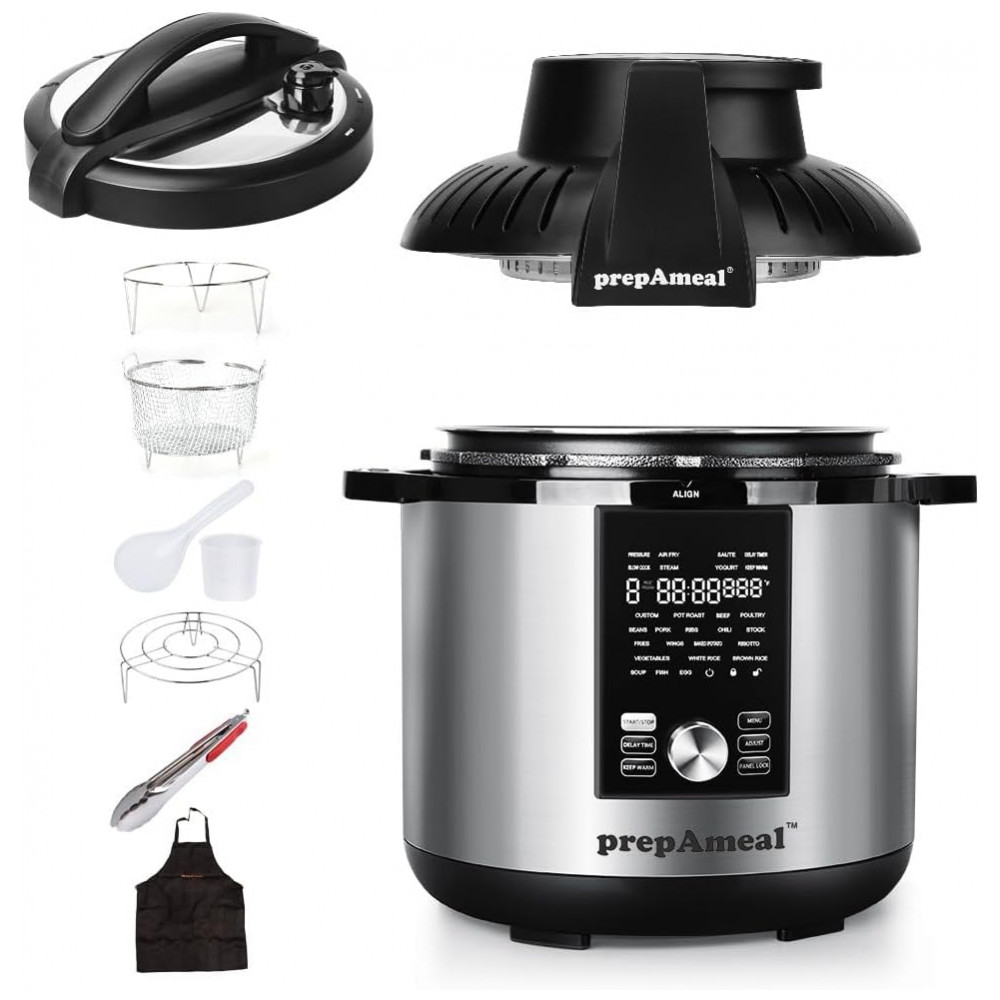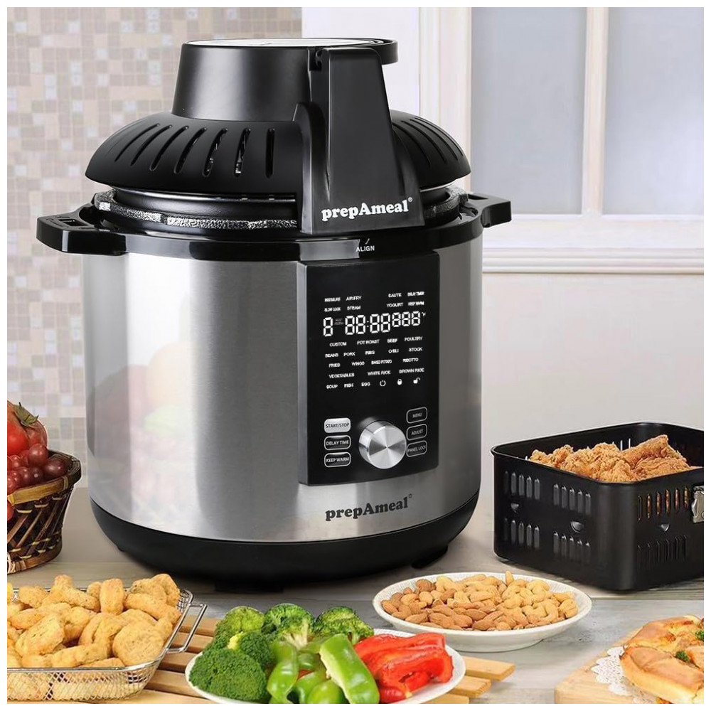 Panela de Pressão Elétrica e Fritadeira de Ar 8Qt da prepAmeal com Tampa de Pressão e Tampa de AirFry 7 Modos de Cozimento Display LCD